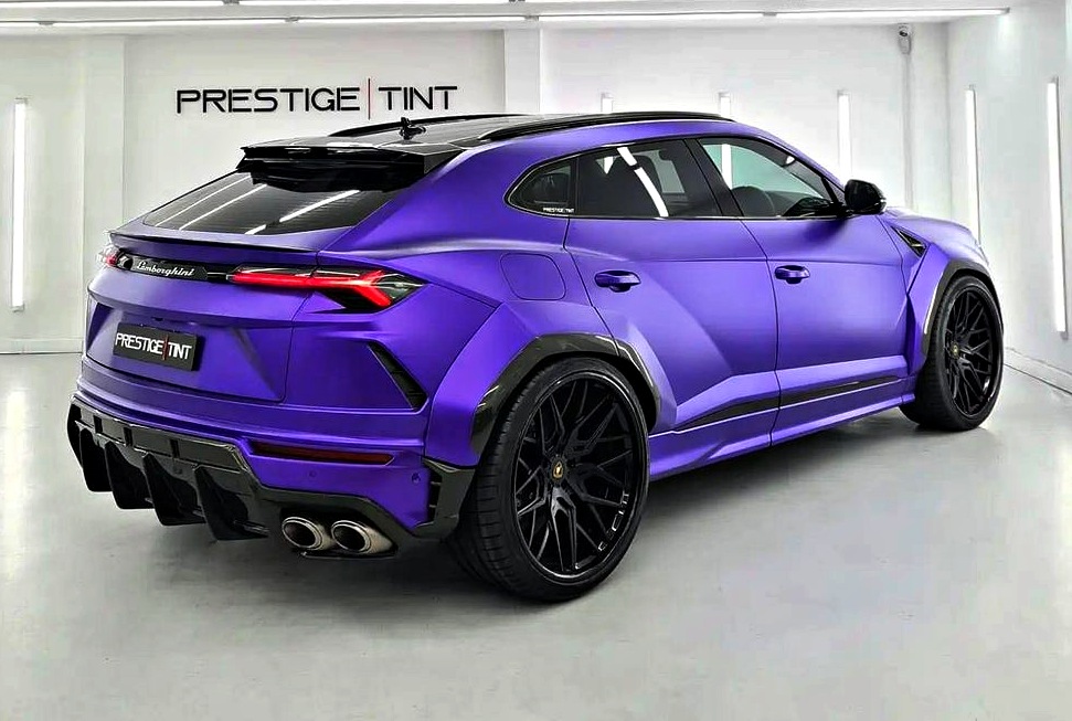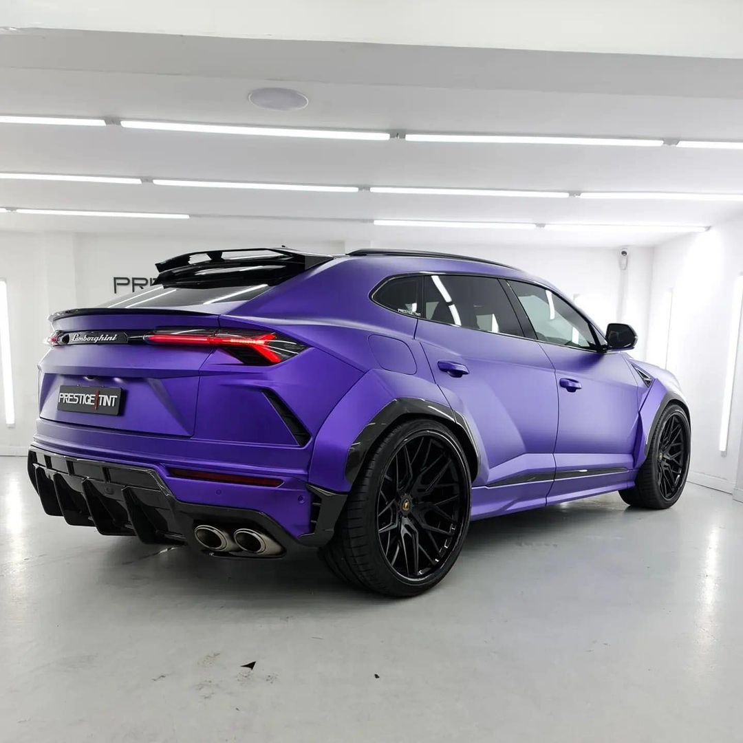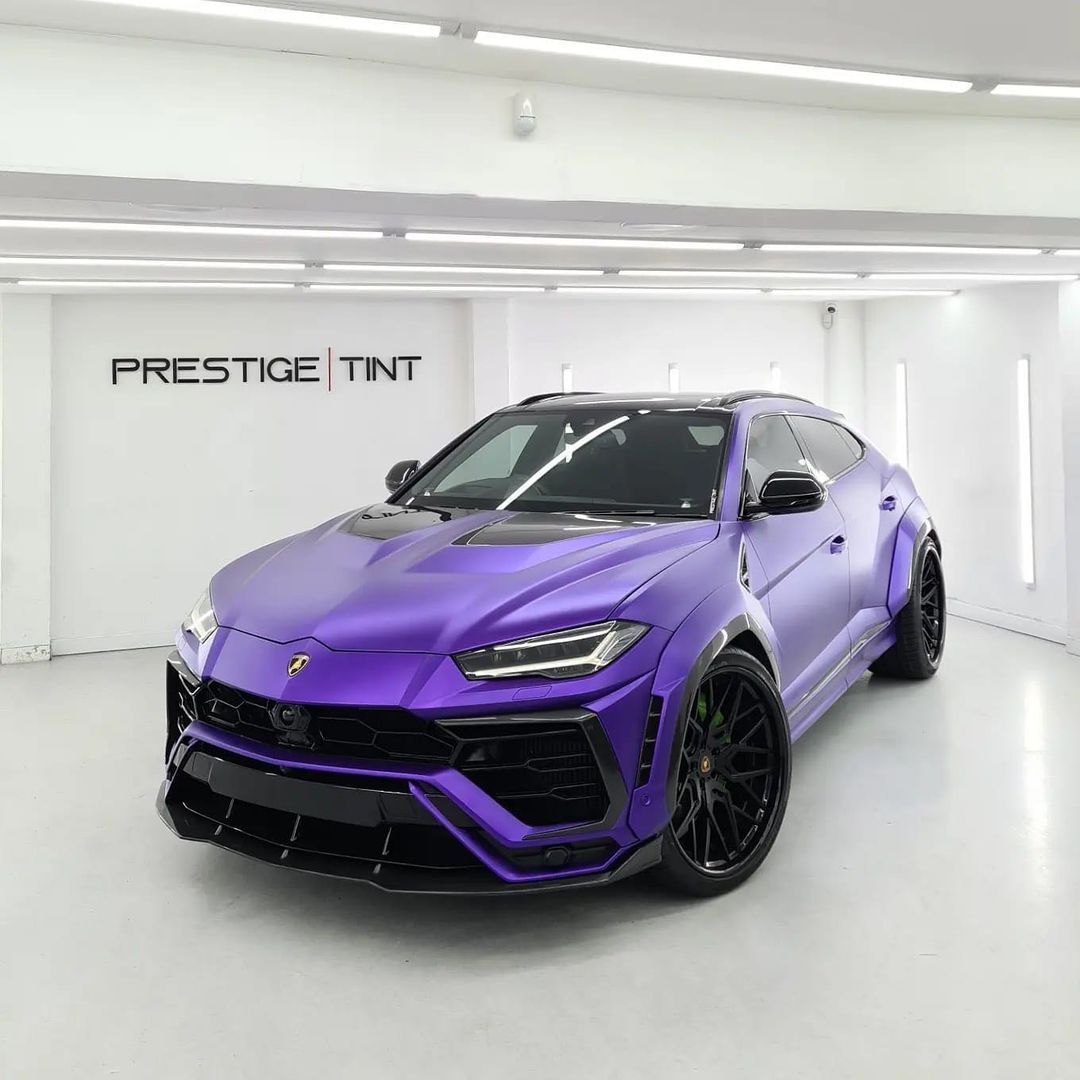 Good looking Lamborghini Urus 1016 industries bodykit wrapped in purple by Prestige Tint with some black details, perfect.