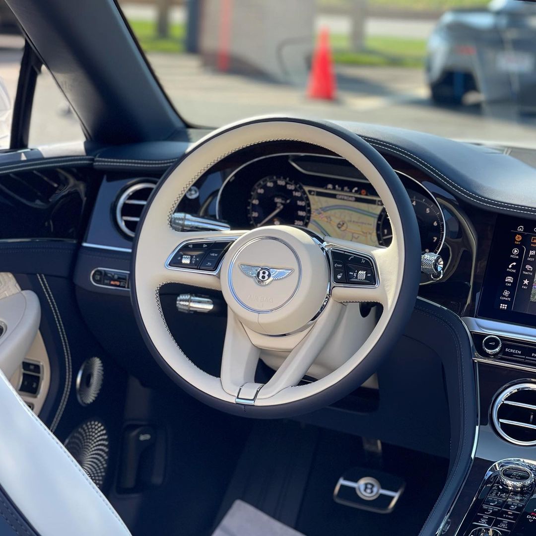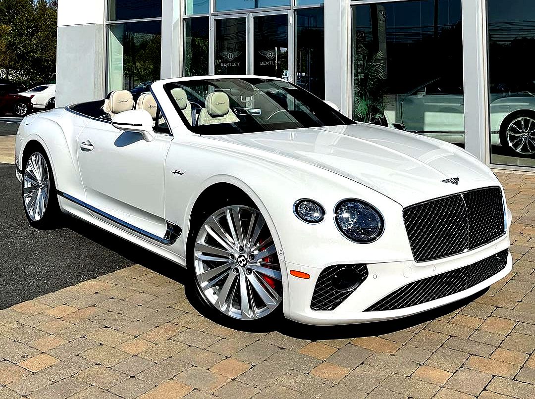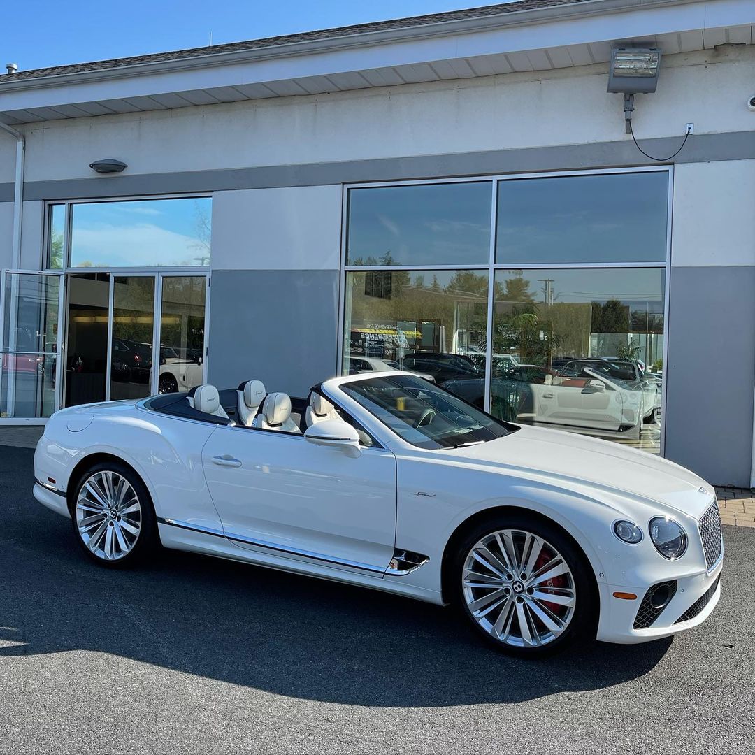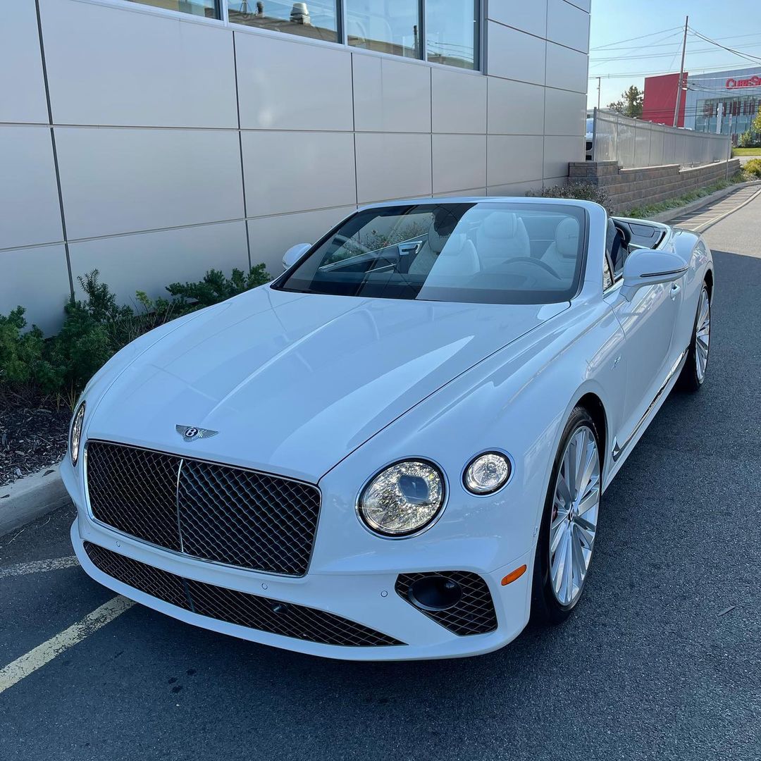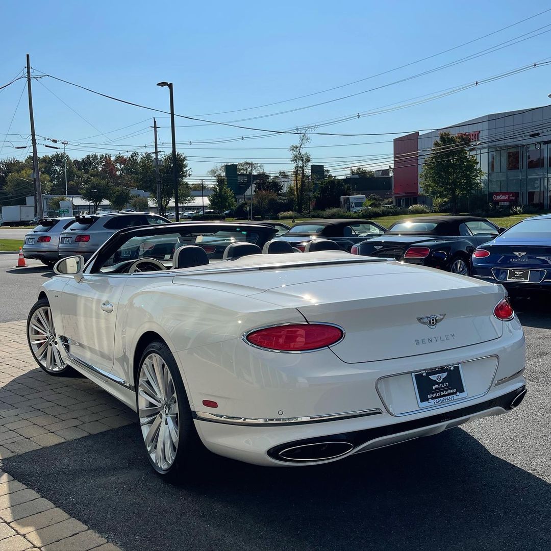 Full feature of Bentley Continental GT Convertible Speed in Glacier White & Linen Interior. From bentleyparsippany.