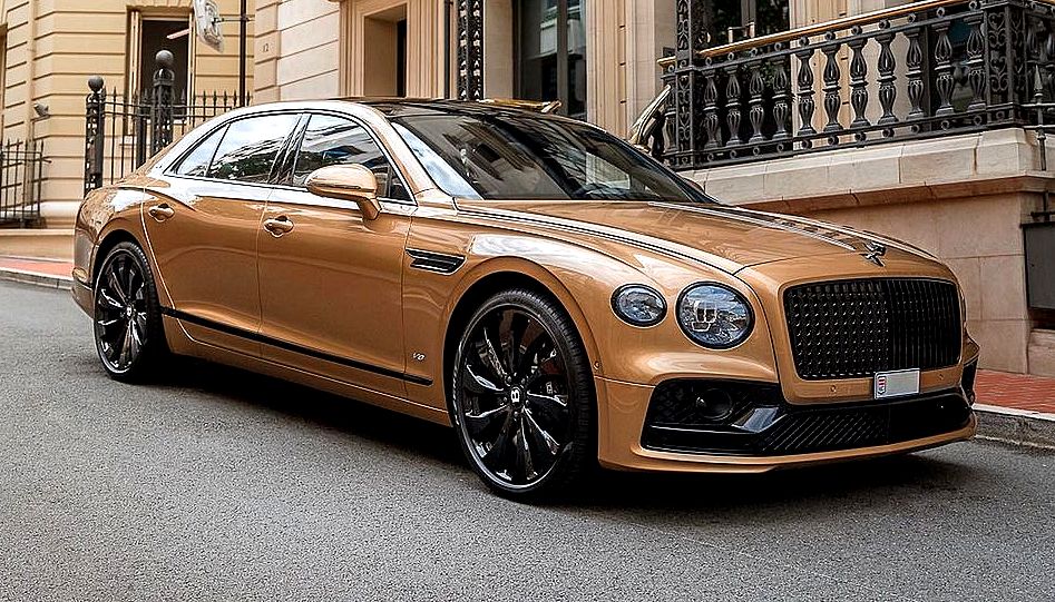 New Bentley Flying Spur V8- Camel Exterior & Beluga Interior, Chic, elegance and craftsmanship in every corner. From bentleymonaco.