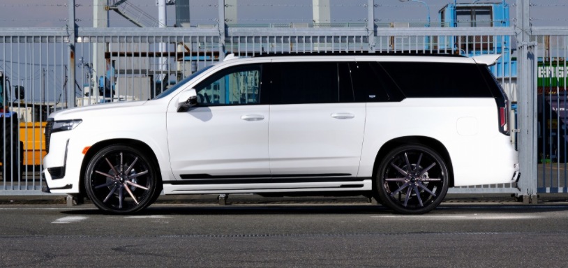 2021 Cadillac Escalade ZERO Design Body Kit Tinted, on black wheels. discover more on http://zero-design.jp/.