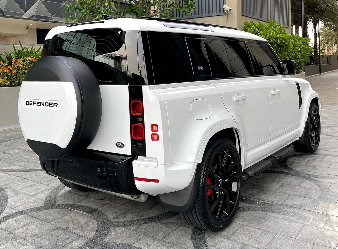 2021 Land Rover Defender P300 white and black beauty presented by aaa.cars, 4 Cylinder, 300 HP Model  22 “wheels, 360 cameras , adaptable rear separate & control assistant on the road.