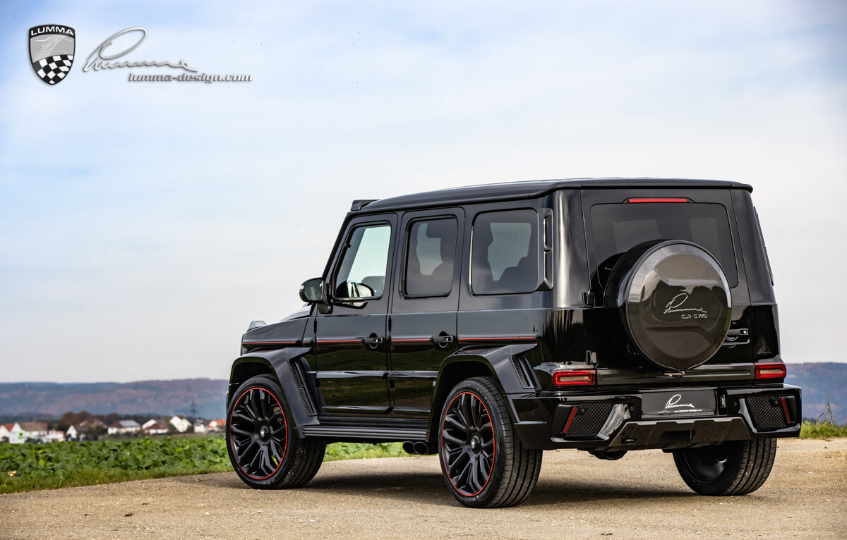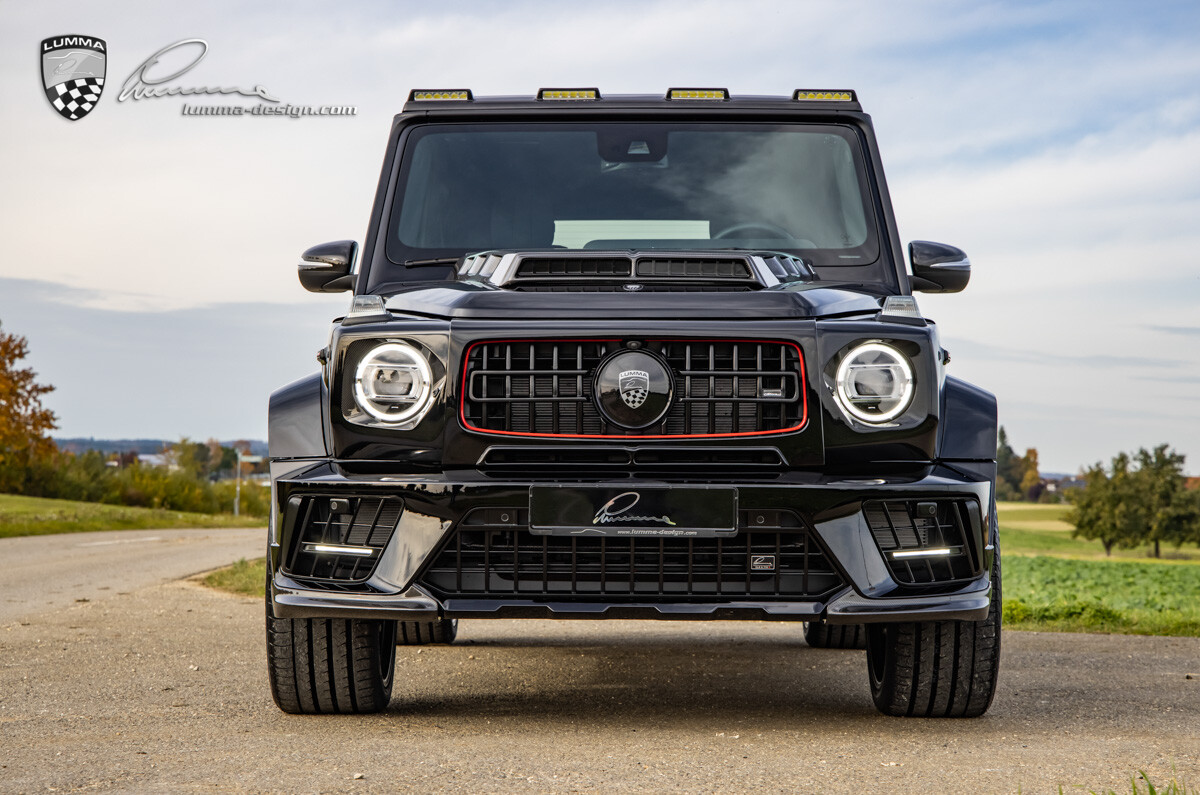 The body kit LUMMA CLR G770 R consists of front spoiler bumper with additional daytime running lights, front and rear fender flares, door panels and a rear bumper with diffuser. The components of the bodykit are made of high-quality PUR plastic and are supplied with mounting material and installation instructions. Carbon exterior elements, matching wheel sets up to 24 inch and other refinement products are also on offer.