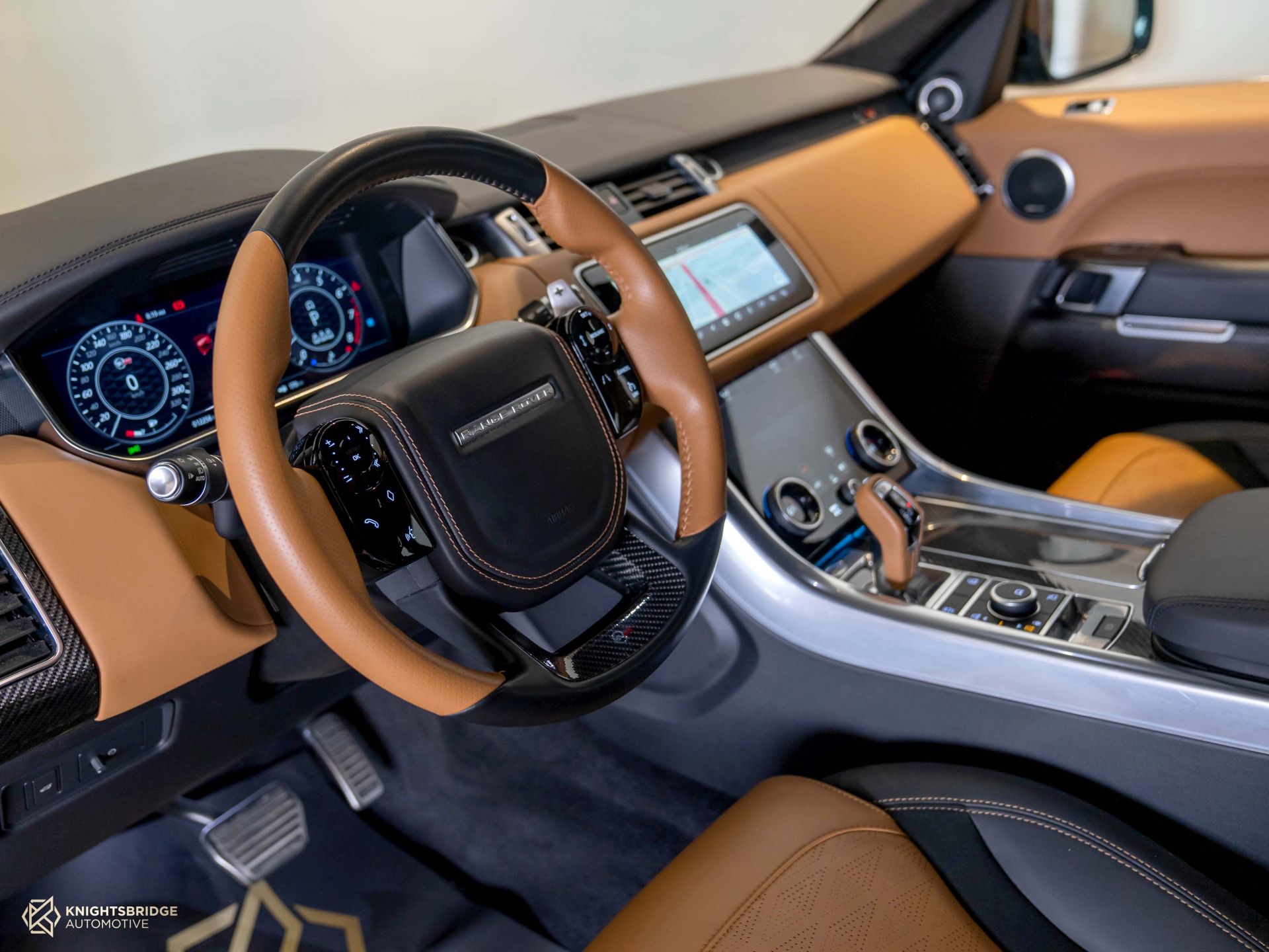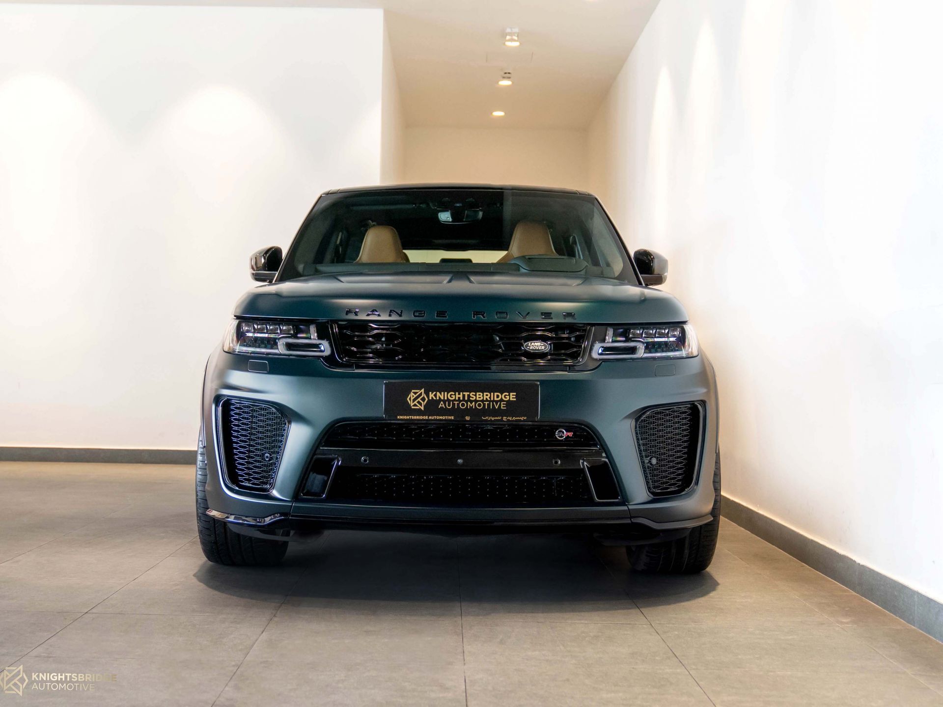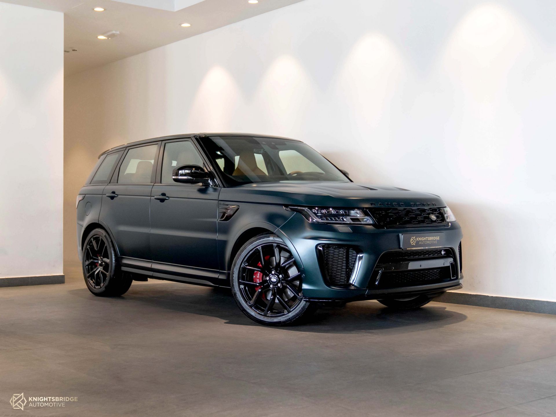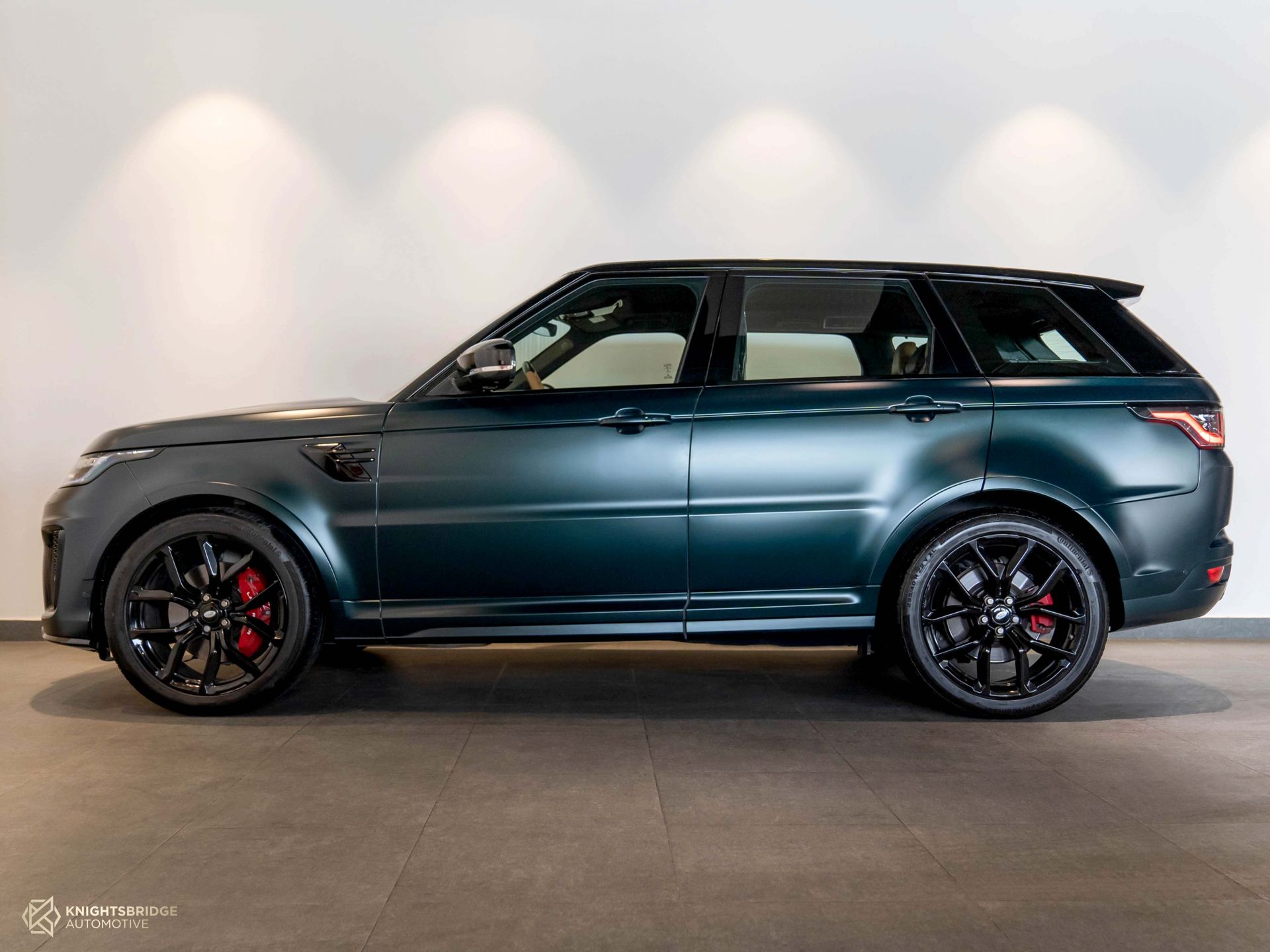 2021 Racing Green Range Rover Sport SVR, brown interior and Black Wheels, beautiful SUV from Knightsbridge Automotive.