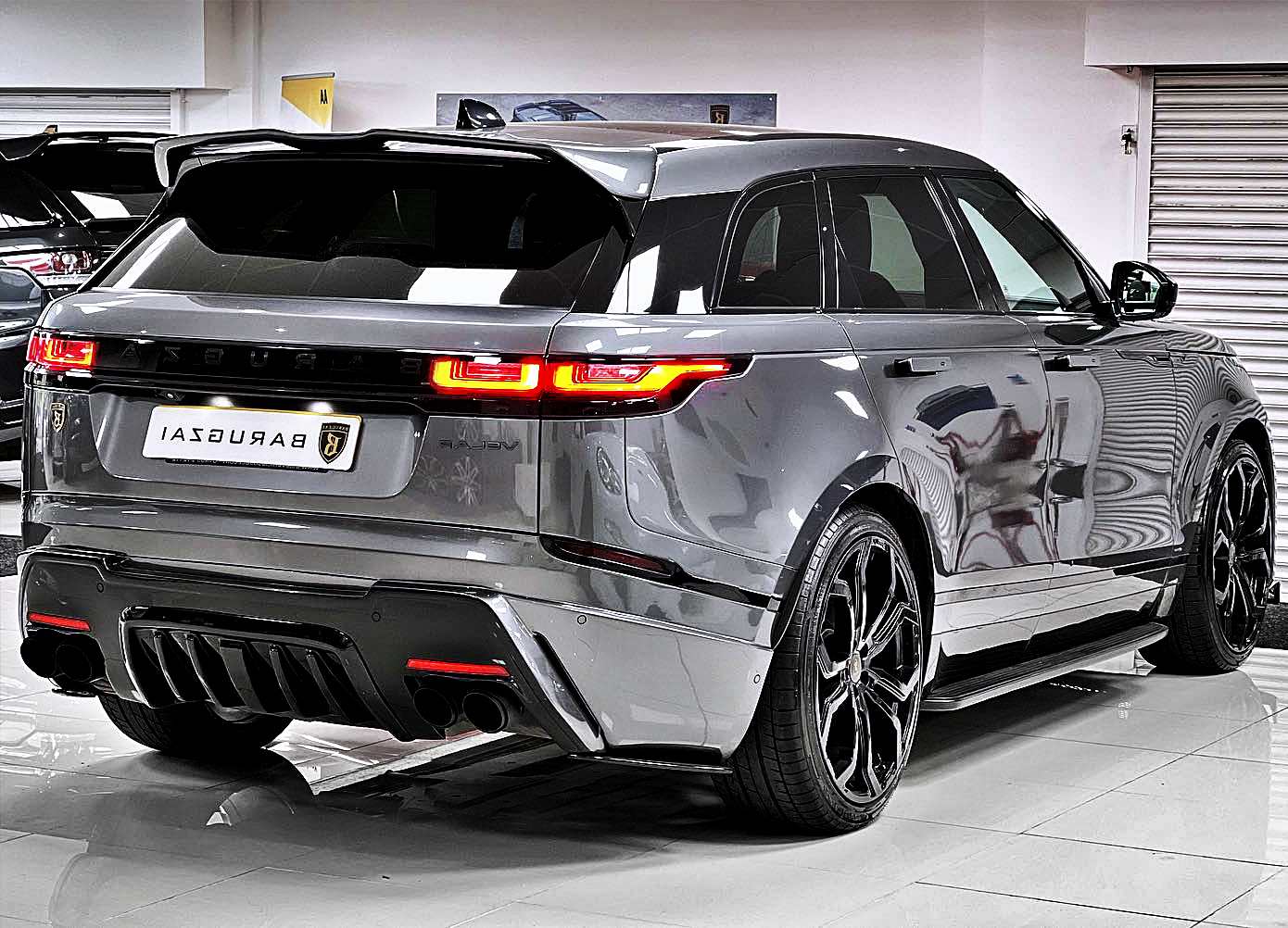 The queen is here, check out this beast, 2022 Barugzai Range Rover Velar 3.0 R-Dynamic Huntress bodykit and custom Barugzai wheels Finished in the Gorgeous Corris Grey with Full Black Ebony Leather Interior…