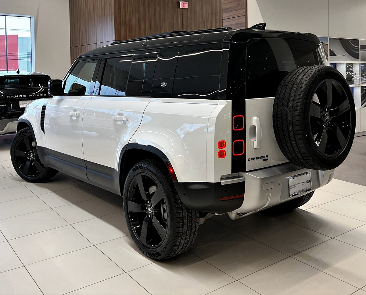 2022 Defender 110 SE in Fuji White making its presence felt with Black Exterior Package & 22” Wheels in Gloss Black from @landroverparsippany.