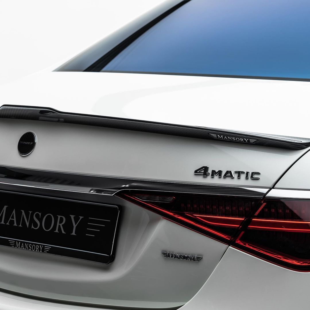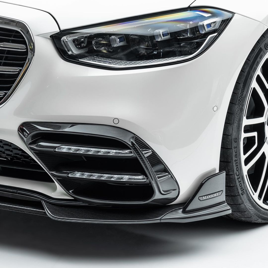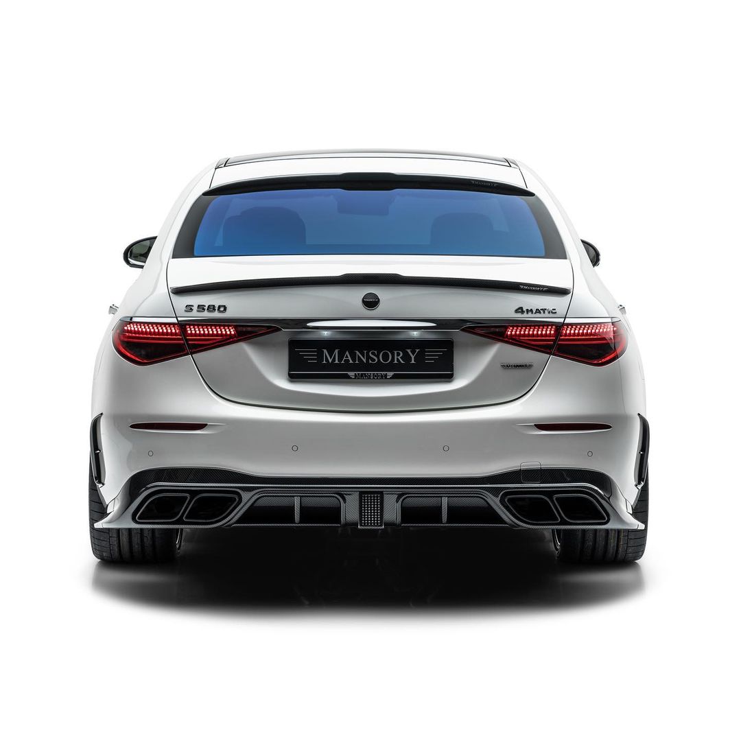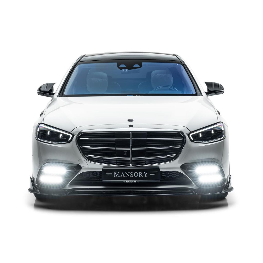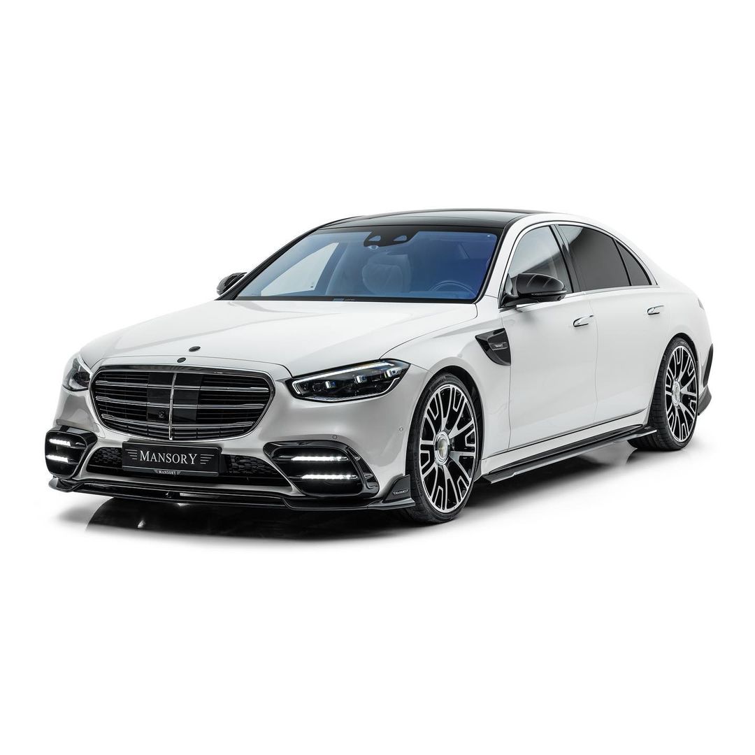 2022 Mansory Mercedes-Benz S 580 finished in white glossy with Aero parts in Carbon rollin‘ on 22 inch wheels.