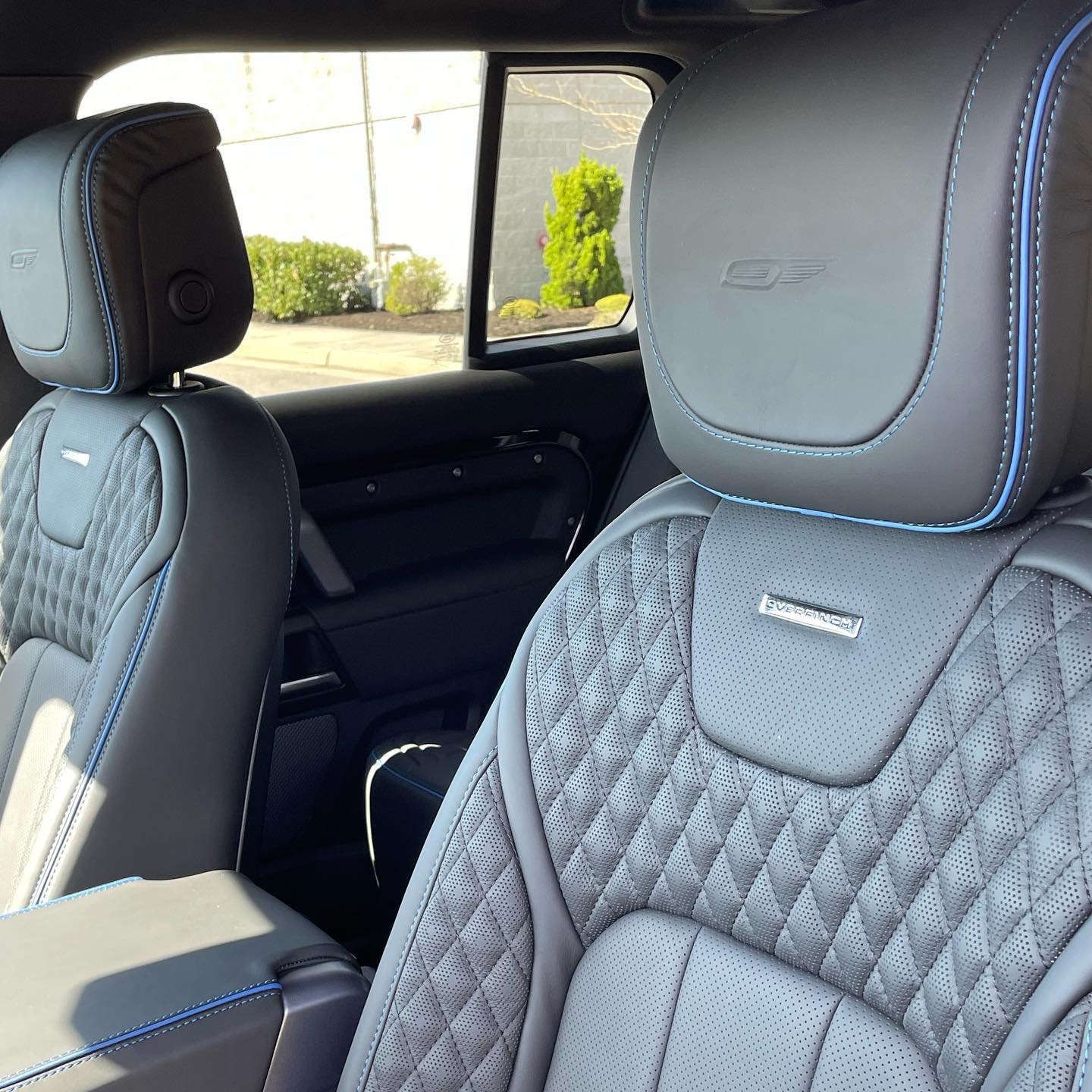 Internally, this vehicle features the custom ordered Overfinch Lumière diamond quilted interior in Ebony leather with contrasting Marine Blue piping and stitching – elegantly complimenting the front brake calipers.
