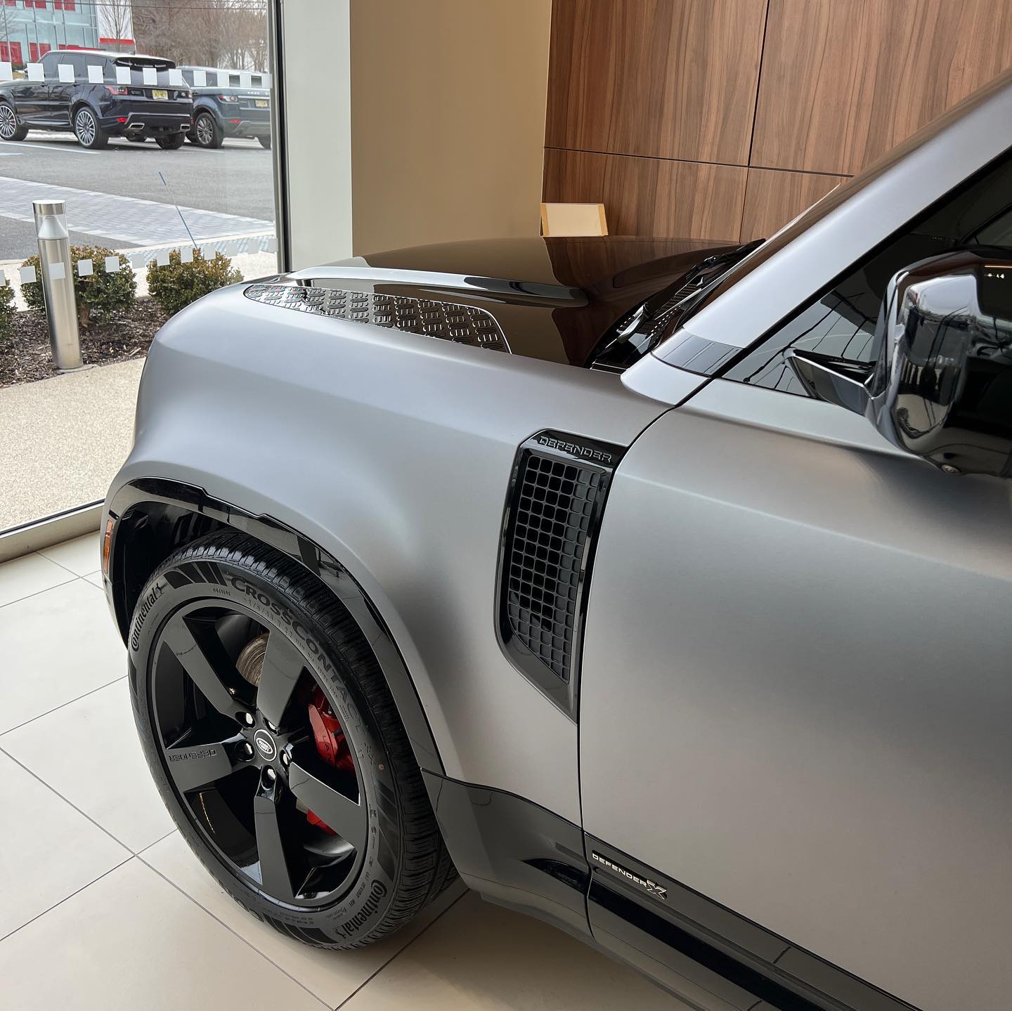 Discover this beautiful 2022 Satin Gray Land Rover Defender X 110 with red calipers from @landroverparsippany .