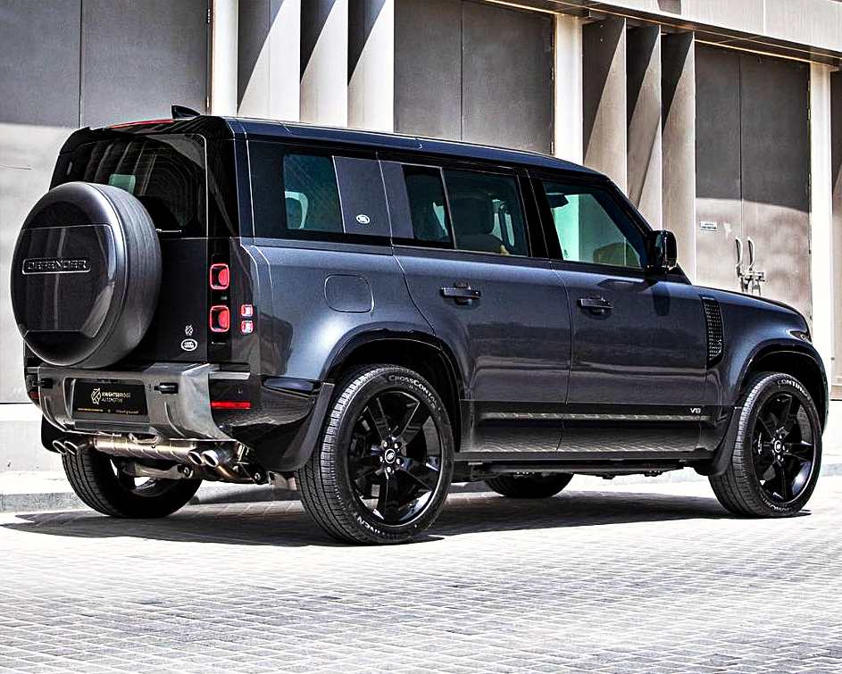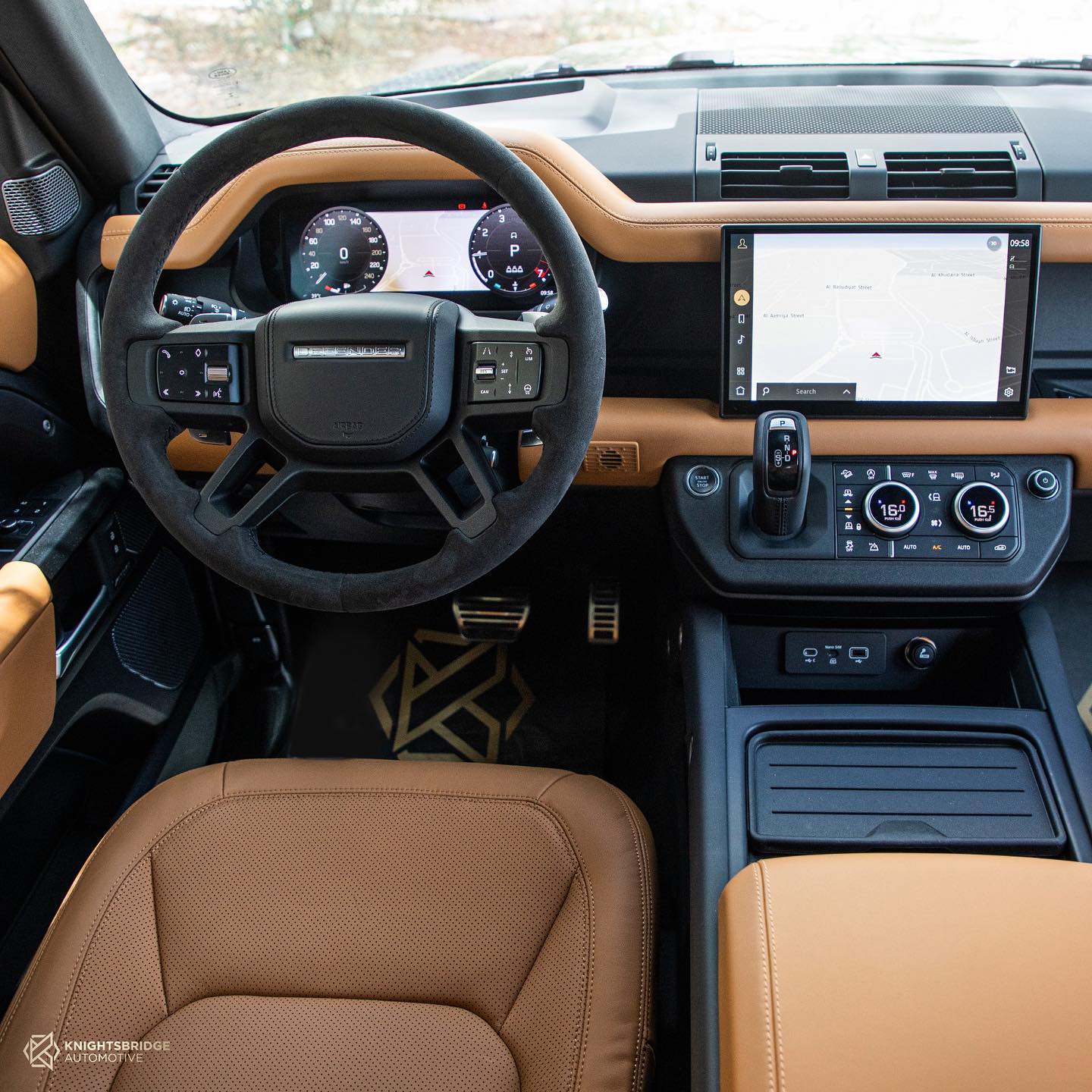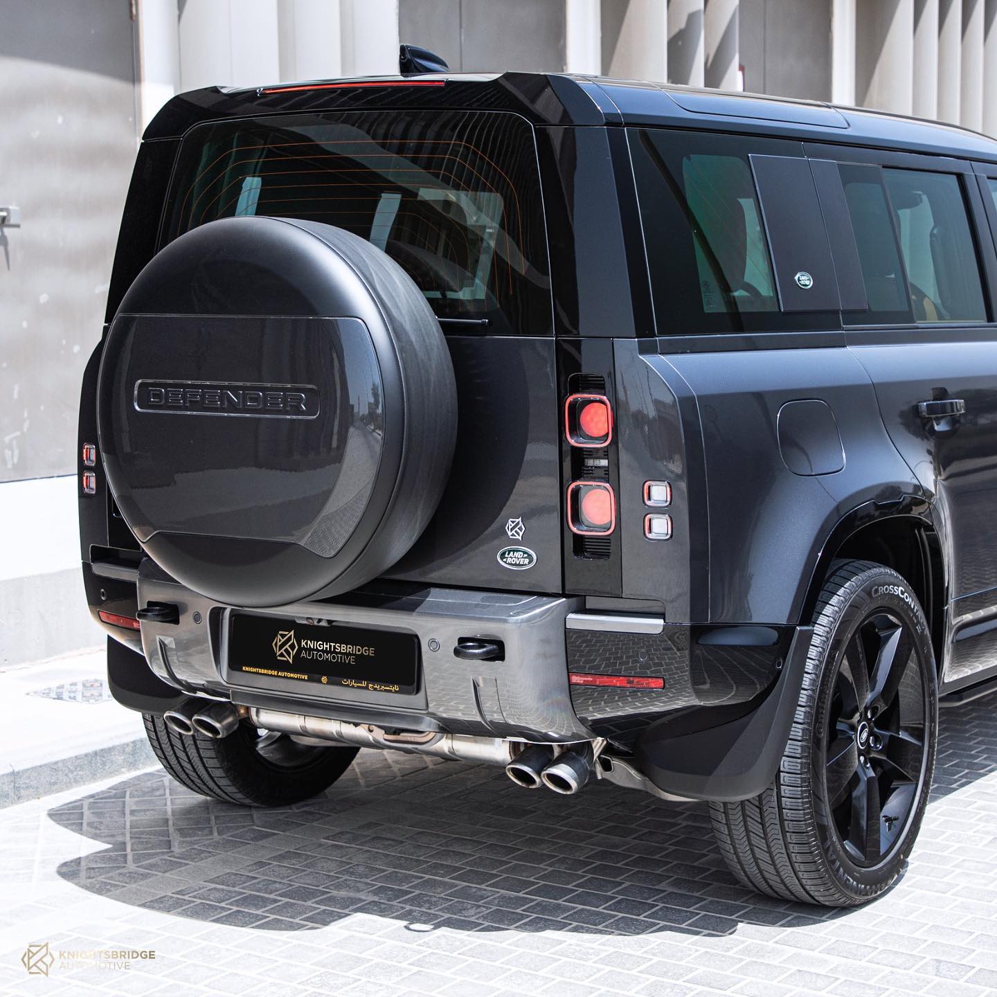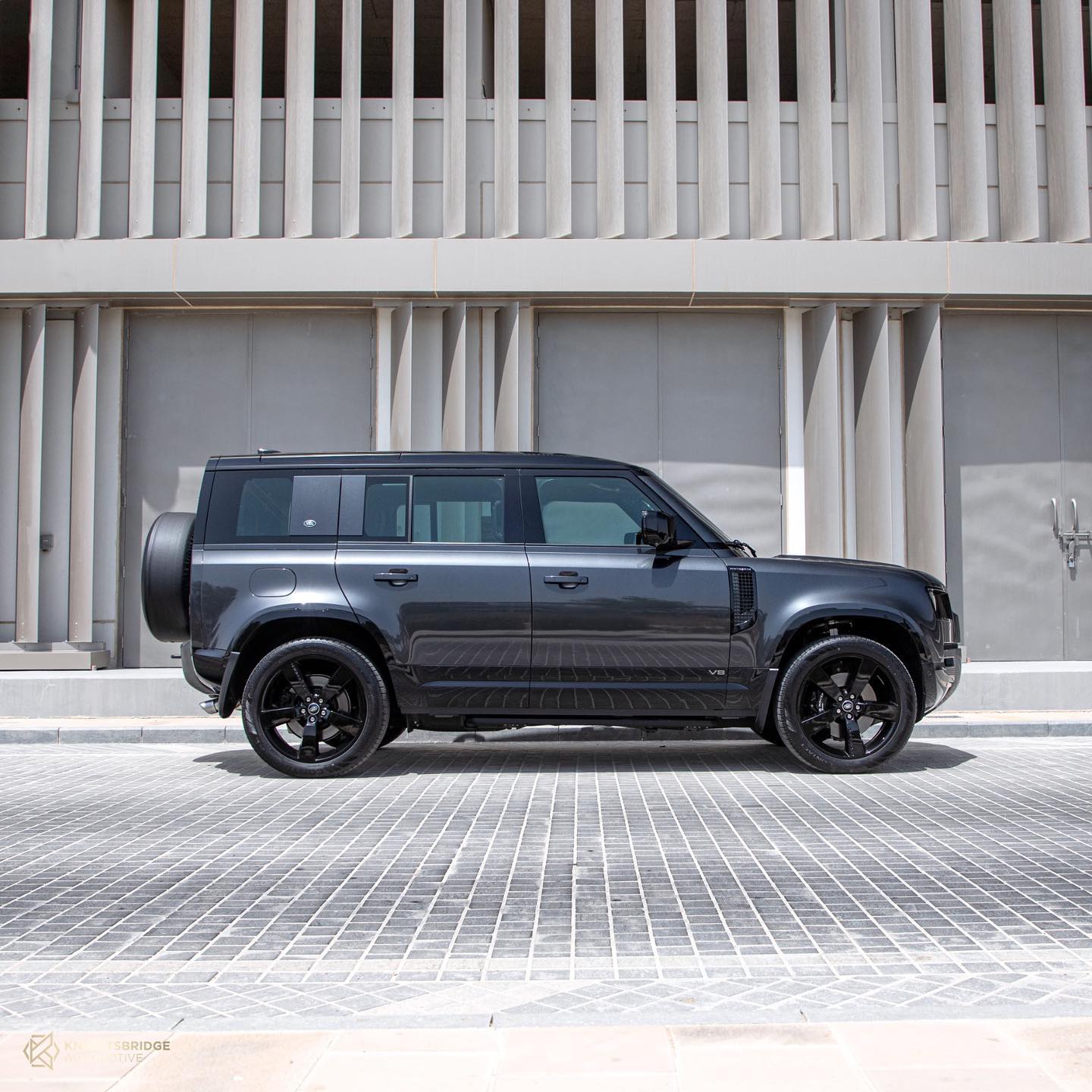 2023 Land Rover Defender 110 X V8 on Black Wheels,specification Includes V8 Engine, Head Up Display, Ambient Lighting, Refrigerator, Meridian Surround Sound System from knightsbridgeqatar.