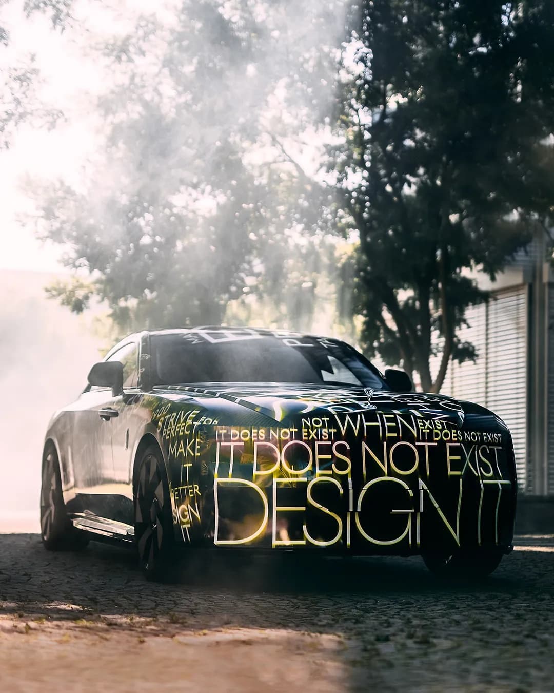 Resembling the retiring Wraith coupé, the development prototype is adorned with one of the best-known quotes from company co-founder Sir Henry Royce: “Strive for perfection in everything you do. Take the best that exists and make it better. When it does not exist, design it.” This is most likely a nod to the Spectre’s bespoke mechanical make-up, which Rolls-Royce claims is “free of any group sharing strategy”.