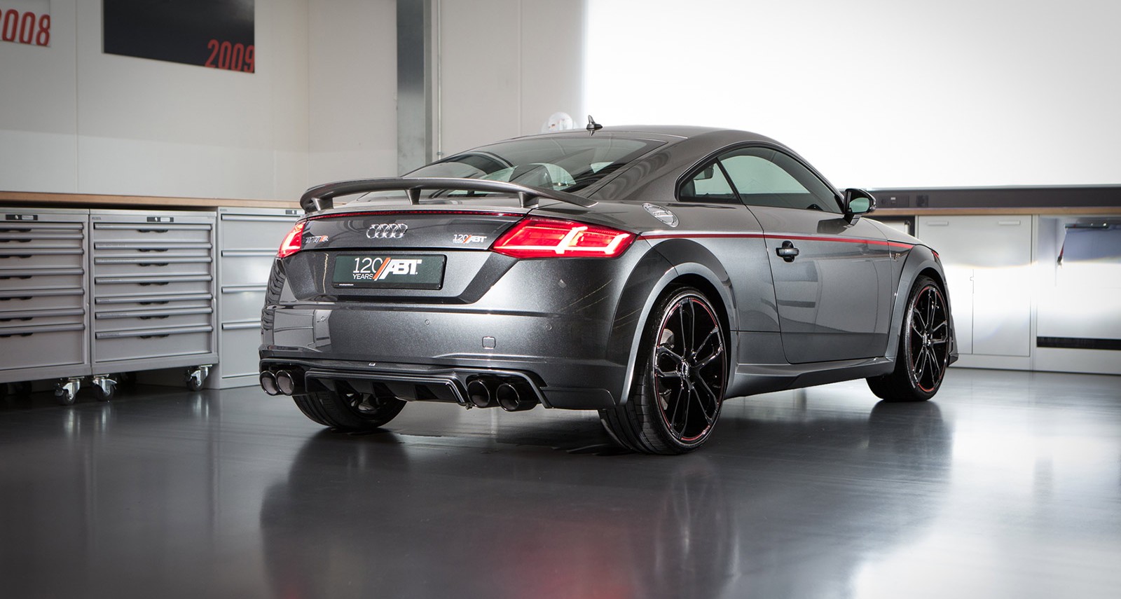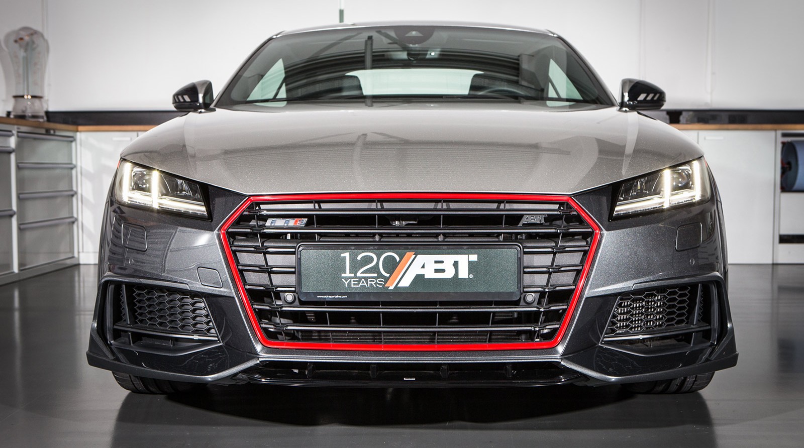 Years“ edition of the ABT TTS is quite something special. The normal 310 hp (228 kW) have been“ABT POWERed” to reach 370 hp (272 kW). Torque is up from 380, now at 460 Nm, and its top speed has been raised to 265 kph. And on the outside, the TTS also shows it is special. Its Daytona-grey paintwork nicely contrast with its silver wrap and turns the coupé into a powerful sports car.