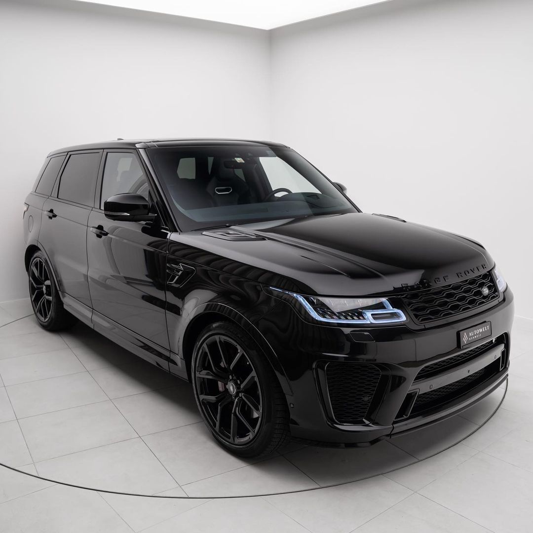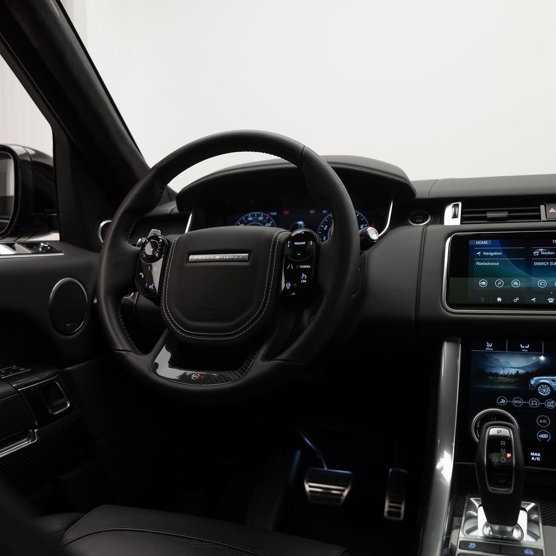 Discover this good looking All Black Range Rover Sport SVR all black interior with carbon details. From autoweltschweiz.