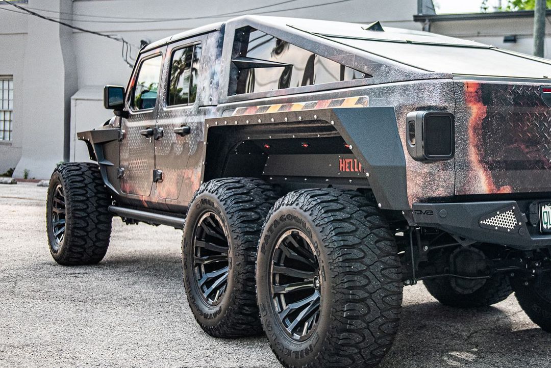 The Hellfire 707HP Supercharged 6.2L Hellcat powered 6×6, power to all 6 wheels.. Gun metal grey Kevlar coated with the king ranch leather interior sitting on 40” tires. 2021’s Starting at $149k. Get yours today with one of our three epic power options, . 1: Turbo Diesel . 2: Corvette 500 Hp LS3 v8. 3: The 707Hp HellCat 6.2L supercharged v8.