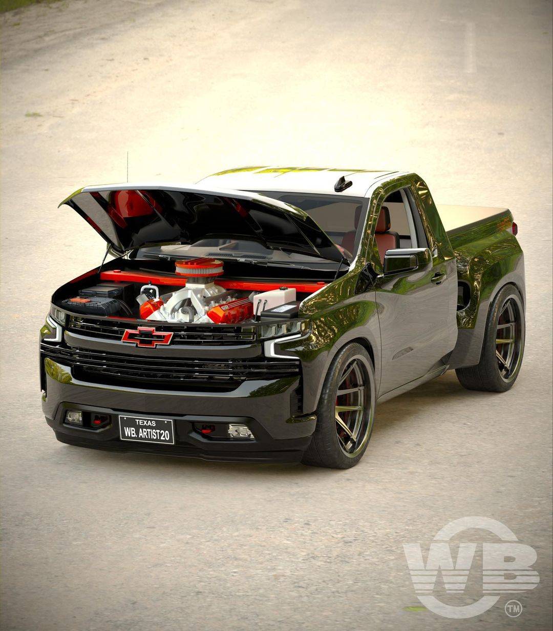 Here’s the Chevy Silverado Stepside 632 SS concept designed by @wb.artist20 “originally I was going for just a single cab stepside then I remembered I had a 632 3D motor in my files so I had to use it on this. I went a little crazy with all the angles. Wish they’d bring back the stepsides”.