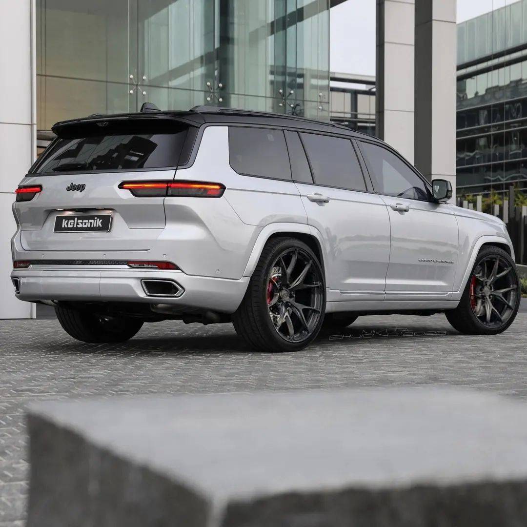 The black grille package designed by @kelsonik gives the Grand Cherokee L a more aggressive and sporty look. It replaces the standard chrome grille, giving the front of the car a more menacing appearance. The black grille also provides a nice contrast to the body color of the car and gives the car a more cohesive look.