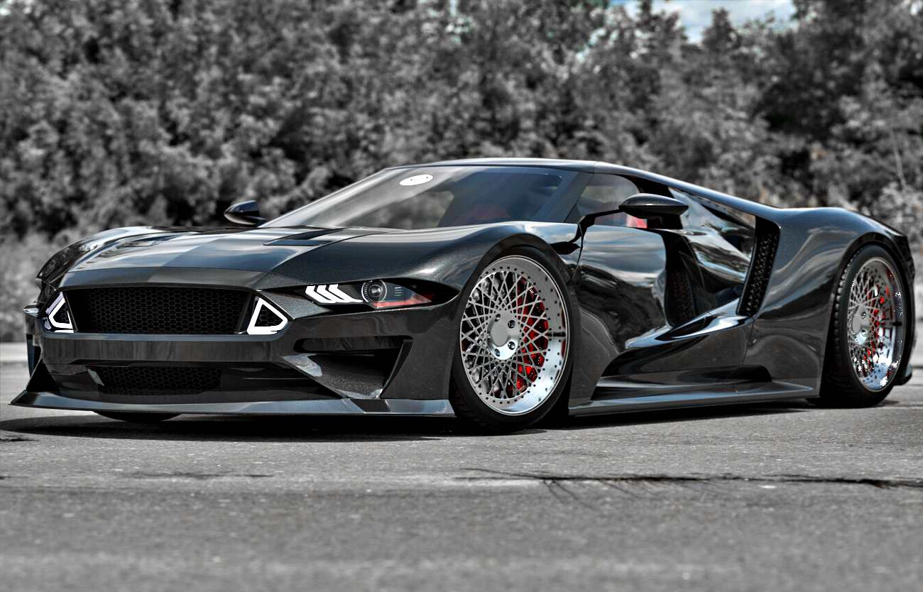 Mustang GT Mid engine supercar is a full design by Rostislav Prokop based on both the Ford GT and the Ford Mustang headlights, this looks amazing actually.