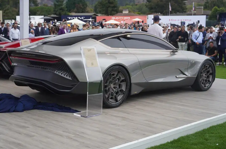 This is the The Czinger Hyper GT, the final design prototypes have arrived at The Quail, with the ultra-sleek 21C V Max supercar making its debut. The Hyper GT is a four-seat high-performance hybrid coupe have a V8 engine, 1233bhp and gullwing doors.