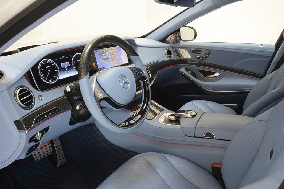 The latest eye-catching beast from the tuner is based around the luxurious S-Class, dubbed the Rocket 900, and thanks to its white and blue theme, combines style with over-the-top insanity. Inside the cabin, Brabus has completely reappointed all four seats in special light blue leather. The blue leather is then continued across the transmission tunnel, roof liner and the door panels. Elsewhere, the cupholders are now illuminated while the trunk has been wrapped in thick quilted leather and even includes two umbrellas.