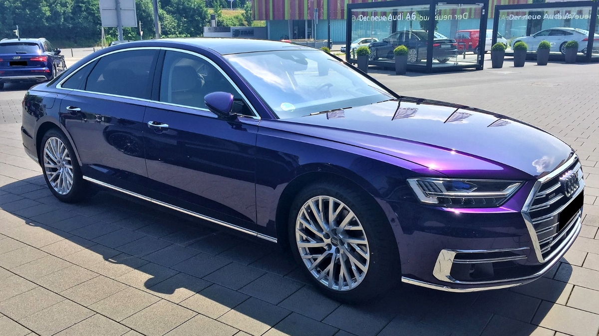 What you’re seeing here is a Velvet Purple exterior, courtesy of Audi Exclusive.The color is by no means new to Audi, but this is one of the few times we’ve seen it on the all-new A8. In fact, the only other time we saw this car wearing this particular shade of purple was during one of its first video reviews, last Autumn.