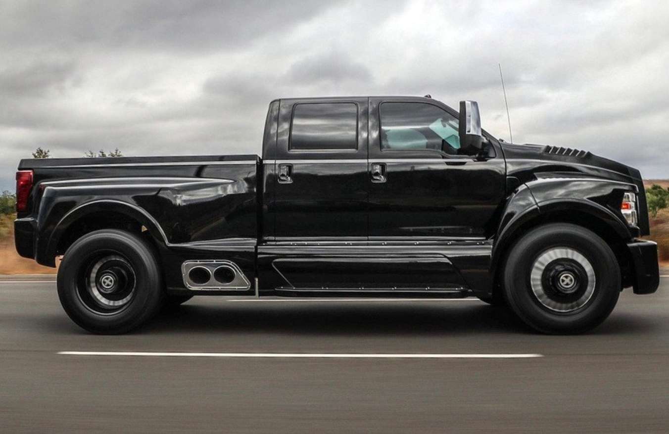 Zero to 60 has a history of building some of the wildest vehicles for its exuberant celebrity status clients. The request came in from former NFL’r Mike Flanagan to build an imposing personal pickup. The best way to do this was base it on F650, which is basically a medium duty semi truck. The goals were to make it aggressive, add a wide body, big wheels, sporty hood and imposing grille and bumpers. The final result was ideal to fit this design brief.