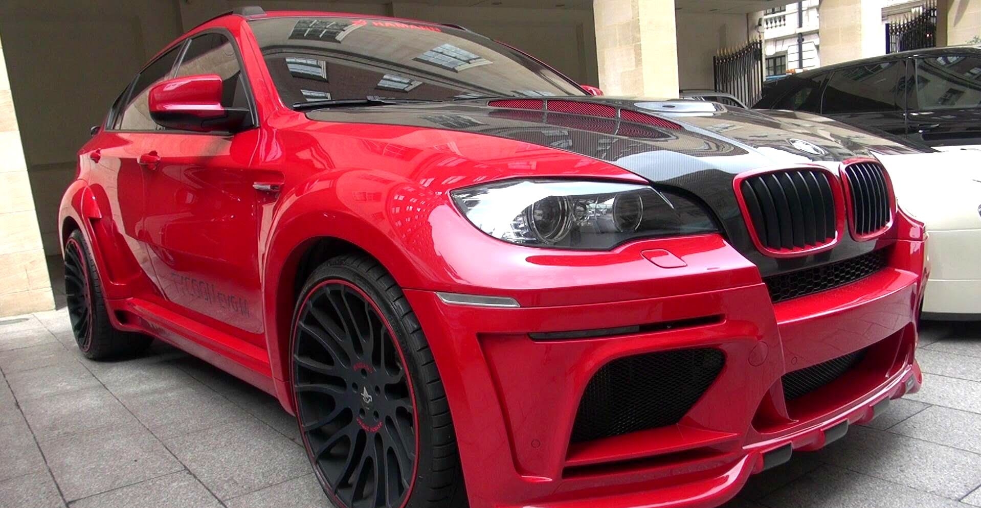 Full HD 1080p Video By NM2255: Red BMW X6M Tycoon EVO twin turbo tuned by Hamann, listen to its loud sound with start up and lots of full throttle accelerations onto the streets of London!