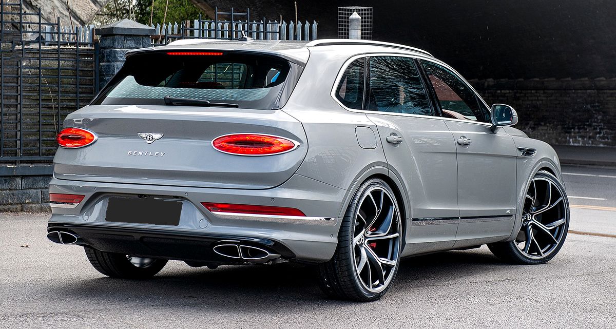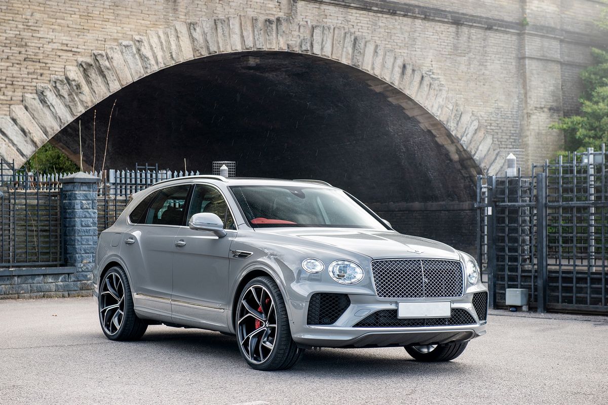 2021 Bentley Bentayga customed byKahn Design in Quartzite Grey Metallic Pearl and a Beluga Black & Hotspur Secondary interior with a power of 550 BHP, red painted calippers and sitting on Kahn…