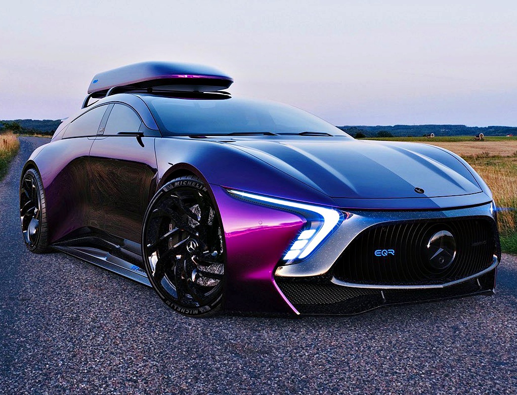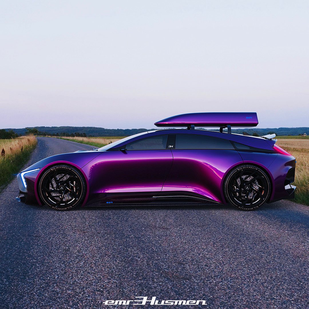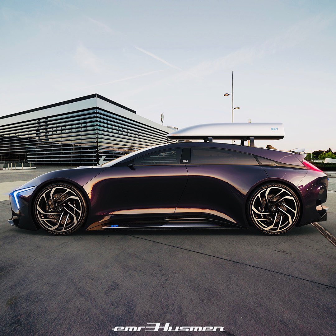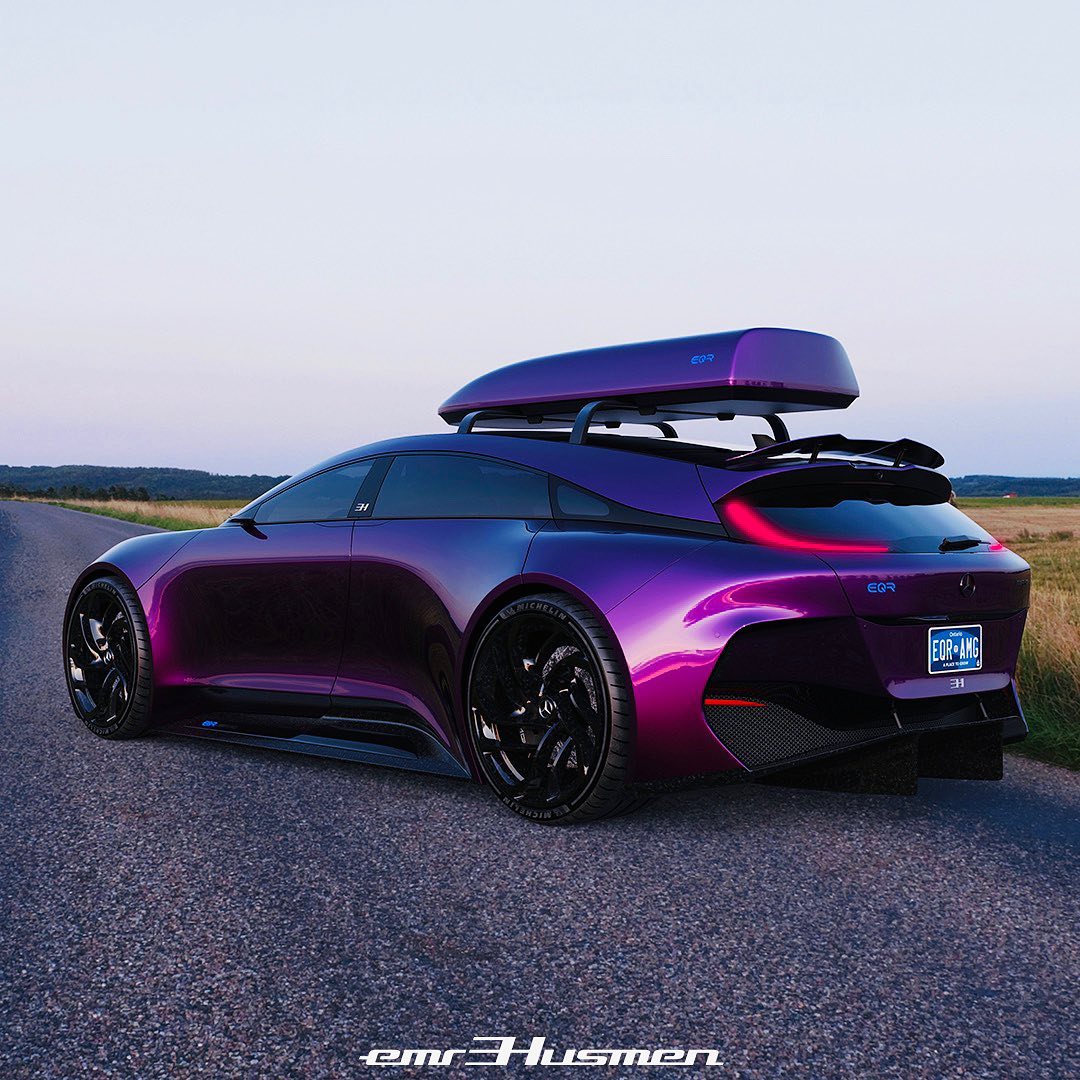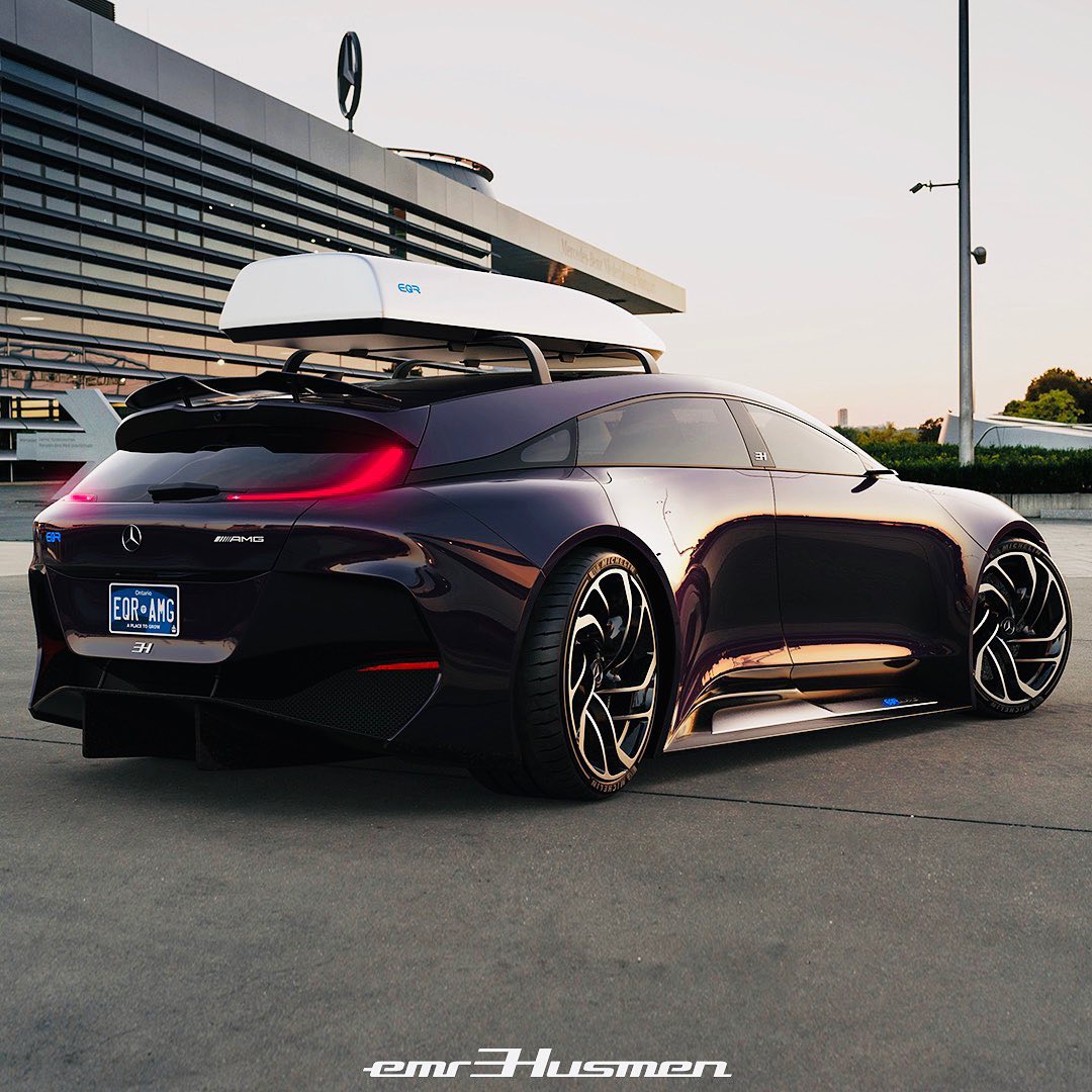 Mercedes-Benz EQR AMG by @emrEHusmen, “I 3d-polygon modeled this project referencing a side view sketch in total of 7-days, inspired from my old SLE project and the legendary R-Class; i re-imagined it as an electric “hyper wagon” which would have +1200hp output.