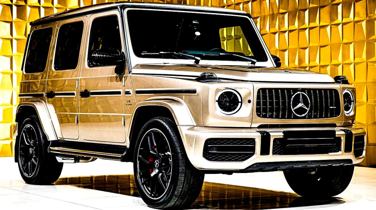 Mercedes-Benz G 63 AMG , Color: Travertine Beige metallic, Upholstery: Leather Exclusive, Red Seats: 5 Mileage: 45 km Transmission: Automatic Drive: Petrol Capacity: 3,982 cm³ Power (kW): 430 kW Power (PS): 585 PS.