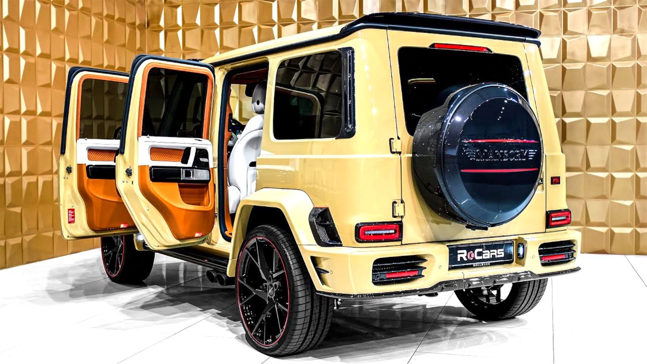 Mercedes AMG G 63 by Mansory – Sound, Interior and Exterior with an Engine: V8, 4.0 L, 720 Ps, 1000 Nm Top Speed: 250 km/h Price: €394.400 Color: Desert Sand Gloss