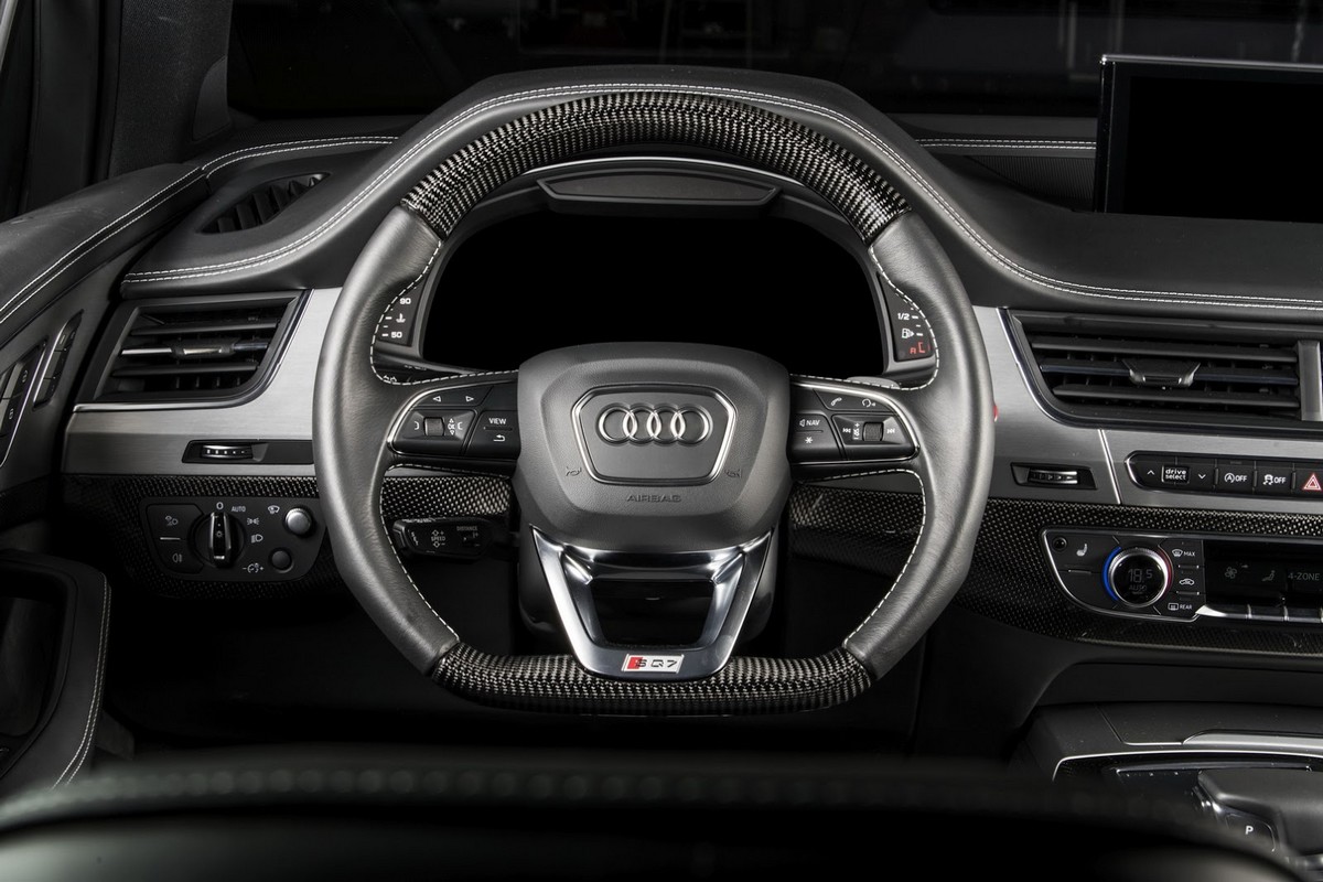 ABT’s exterior makeover consists of a number of new parts, including a front apron, fender extensions, rear diffuser add-ons, roof spoiler, fender inserts and side sills, along with carbon fiber front grille and exhaust tips, and 22-inch wheels, which together, give the SQ7 a more masculine (but also, convoluted) appearance.