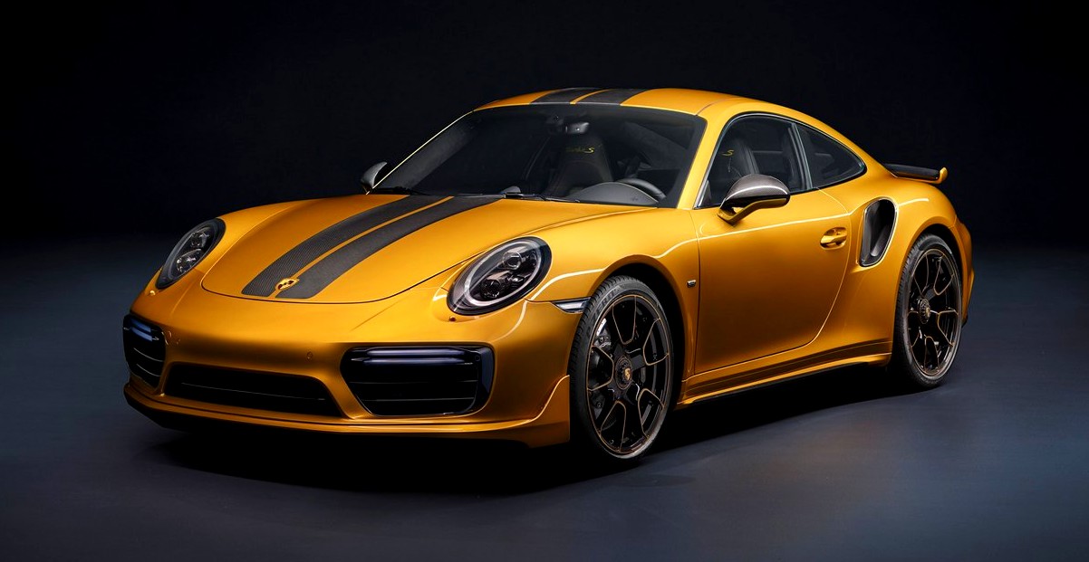 Porsche has taken the wraps off the new 911 Turbo S Exclusive Series. Billed as the “most powerful and unique 911 Turbo S” ever created, the special edition sports car has a Golden Yellow Metallic exterior with carbon fiber stripes on the roof and hood. Designers also installed carbon fiber side skirts and unique 20-inch central locking wheels with Golden Yellow accents.