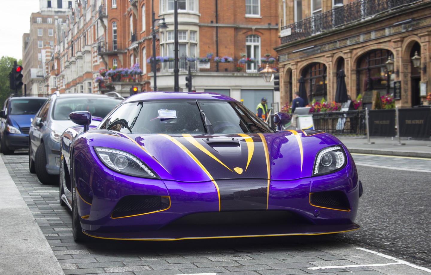 In this video, you will see a walkaround clip, startup and acceleration of this purple and gold Koenigsegg Agera R Zijin 1of1. There’s also a clip of a Pagani Zonda Startup, and acceleration.