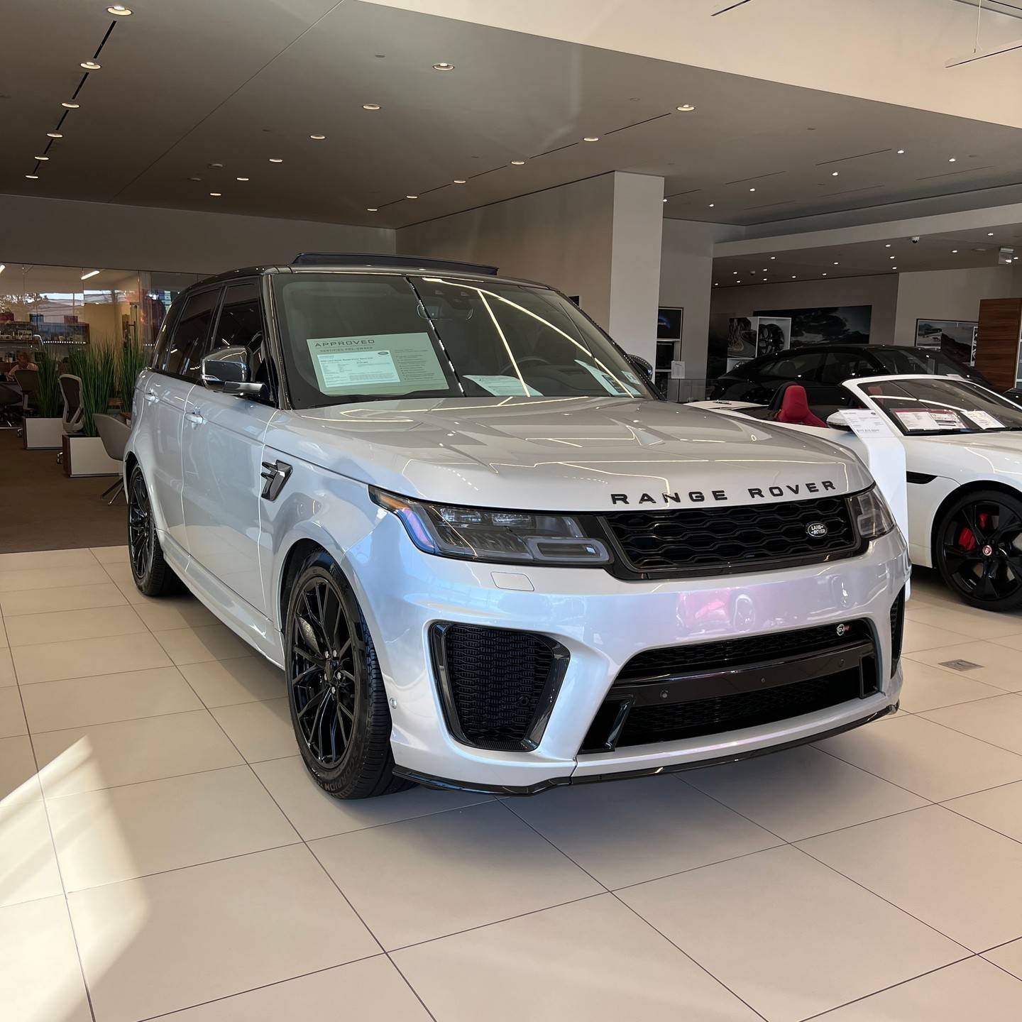 Special 2022 Range Rover SVR metallic grey with black touches and special wheels, this is the pure SUV sport perfection from Land Rover Range Rover. @landroverparsippany.
