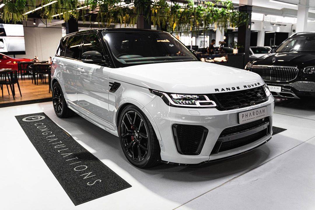 Special 2022 Tinted Range Rover SVR metallic white with black touches, this is the pure SUV sport perfection from Land Rover Range Rover. From @pharoahauto.