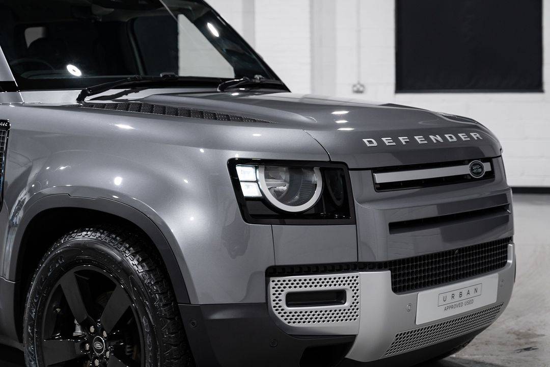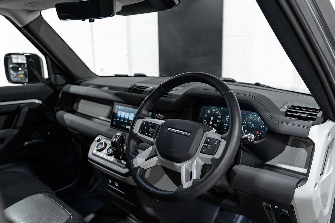 This color choice is a popular one, as it is neutral and easy to maintain, making it perfect for those who want an understated yet stylish vehicle. The black alloy wheels on the Defender 110 add to its overall aesthetic appeal, while also providing a sturdy and reliable foundation for the vehicle. From
