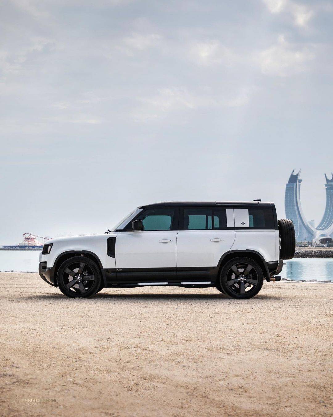 2023 Land Rover Defender 110 X, a luxurious and powerful SUV equipped with a 5.0 litre 8 cylinder engine. It features 22-inch alloy wheels, a quick silver exhaust system, and an 11.4” infotainment screen. The Defender 110 X also has a panoramic sunroof, heating and cooling seats, a head-up display, wireless mobile charging, a refrigerator, and a Meridian surround sound system for a top-notch driving experience. From @knightsbridgeqatar.