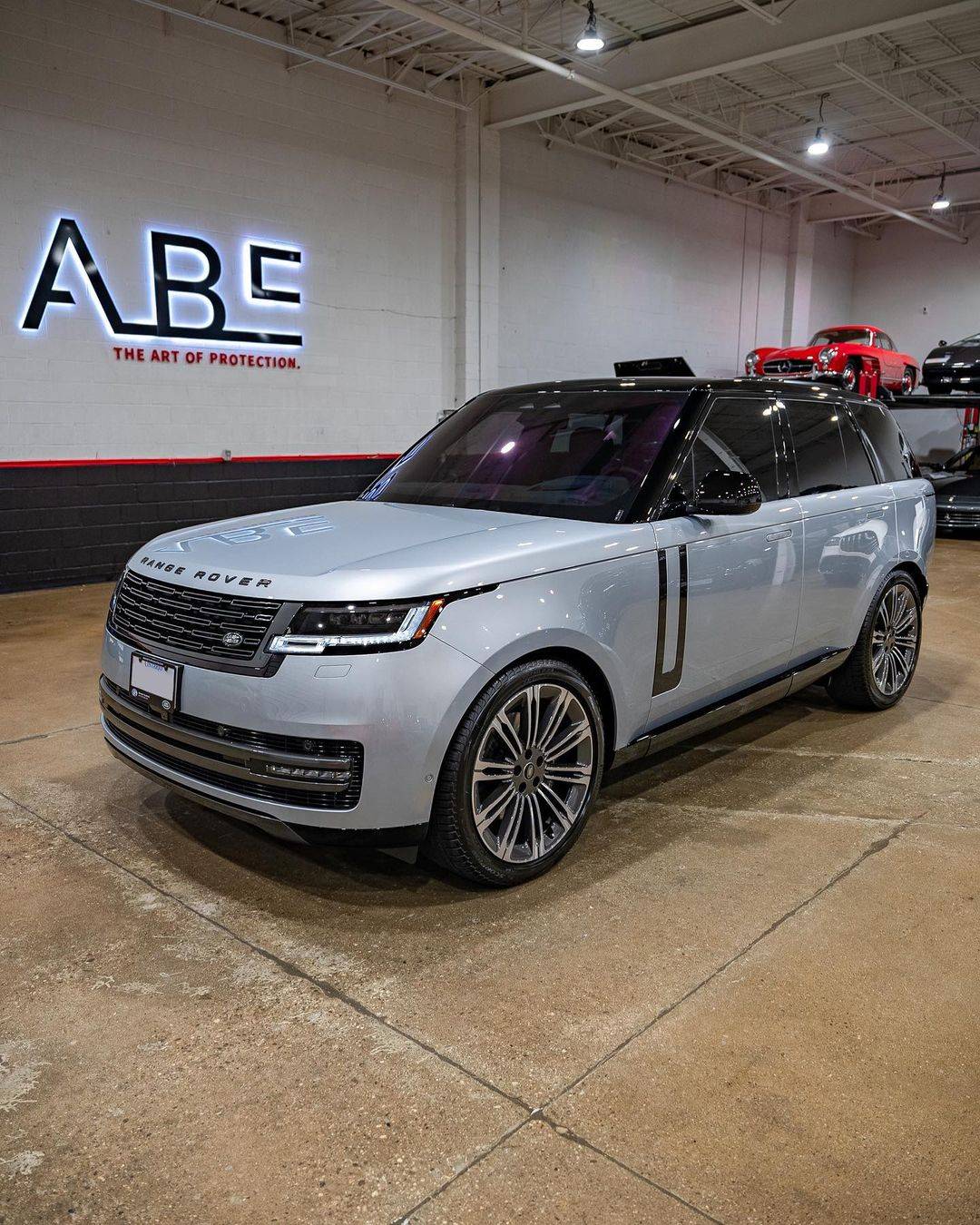 2023 Range Rover Vogue, a luxurious SUV that represents the pinnacle of the Range Rover line. This particular version of the Vogue comes in a striking Light Blue color, which gives the car a unique and distinctive look. The car features a black interior, which adds to its luxurious and refined appearance. From @ali_autobathelite.