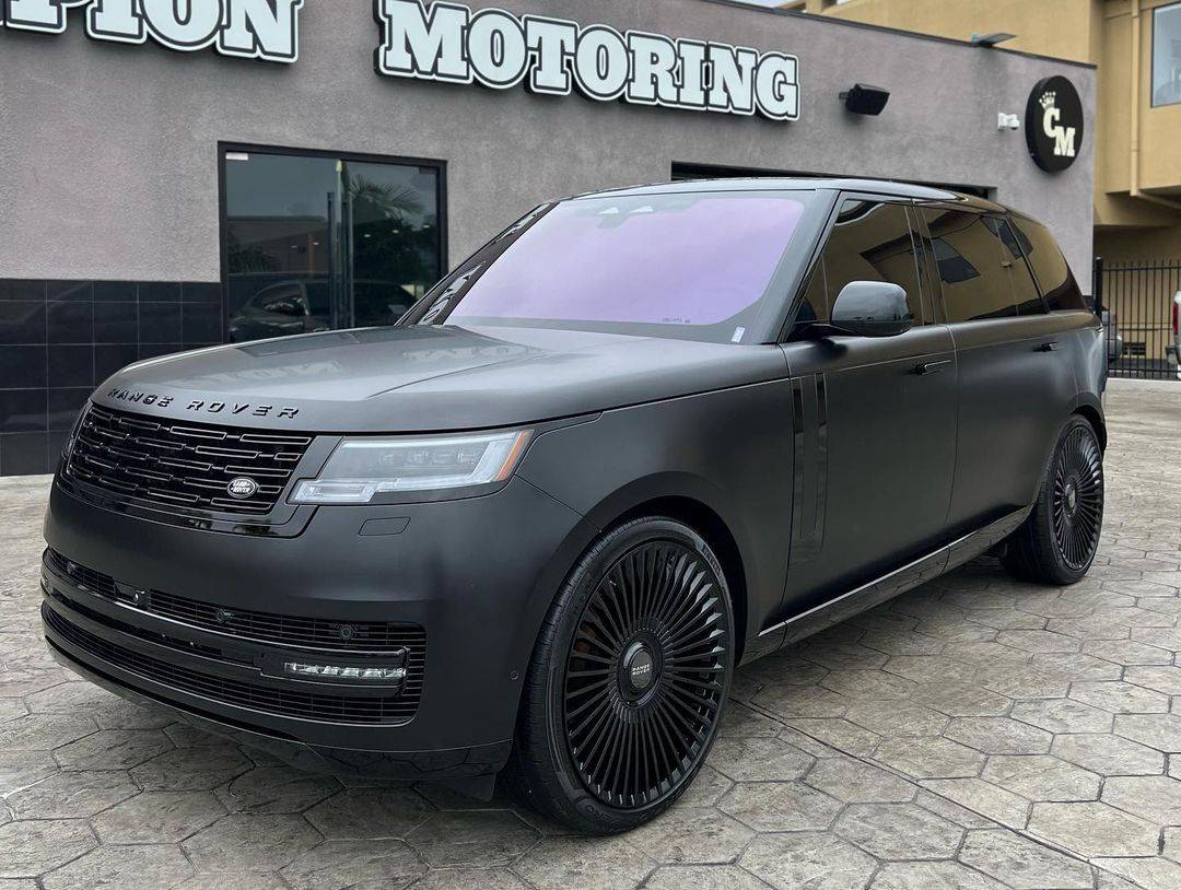 2023 Satin Black Range Rover, an iconic luxury SUV known for its refinement, capability, and spaciousness. In this particular configuration, the Range Rover is equipped with a set of 24-inch Forgiato wheels finished in a sleek Satin Black color. These wheels not only enhance the vehicle’s aesthetics but also add a touch of aggressiveness to its overall appearance. From @champion_motoring.