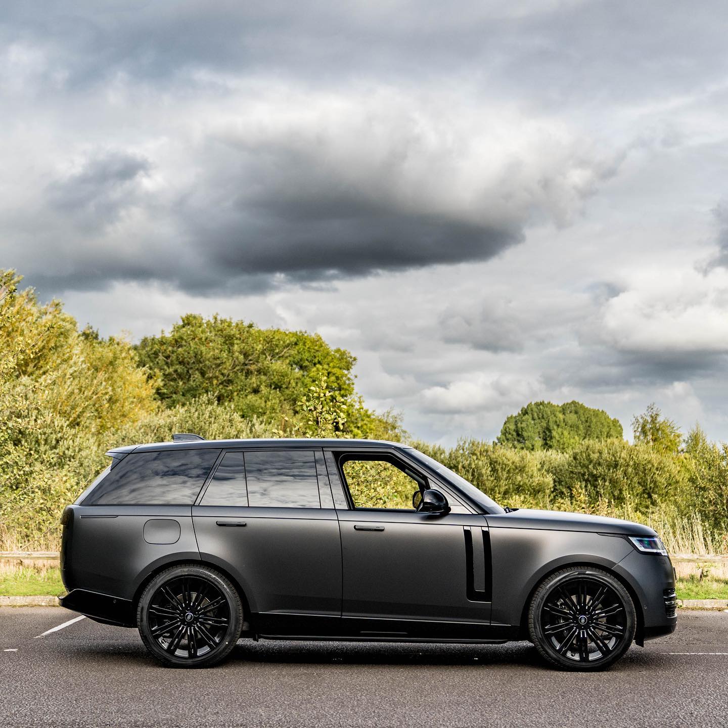 2023 Range Rover Vogue Satin black sitting on matching color wheels, one of the best looking new Range Rovers out there, from @redlinespecialistcars.