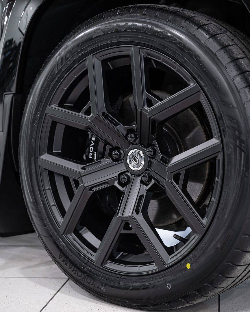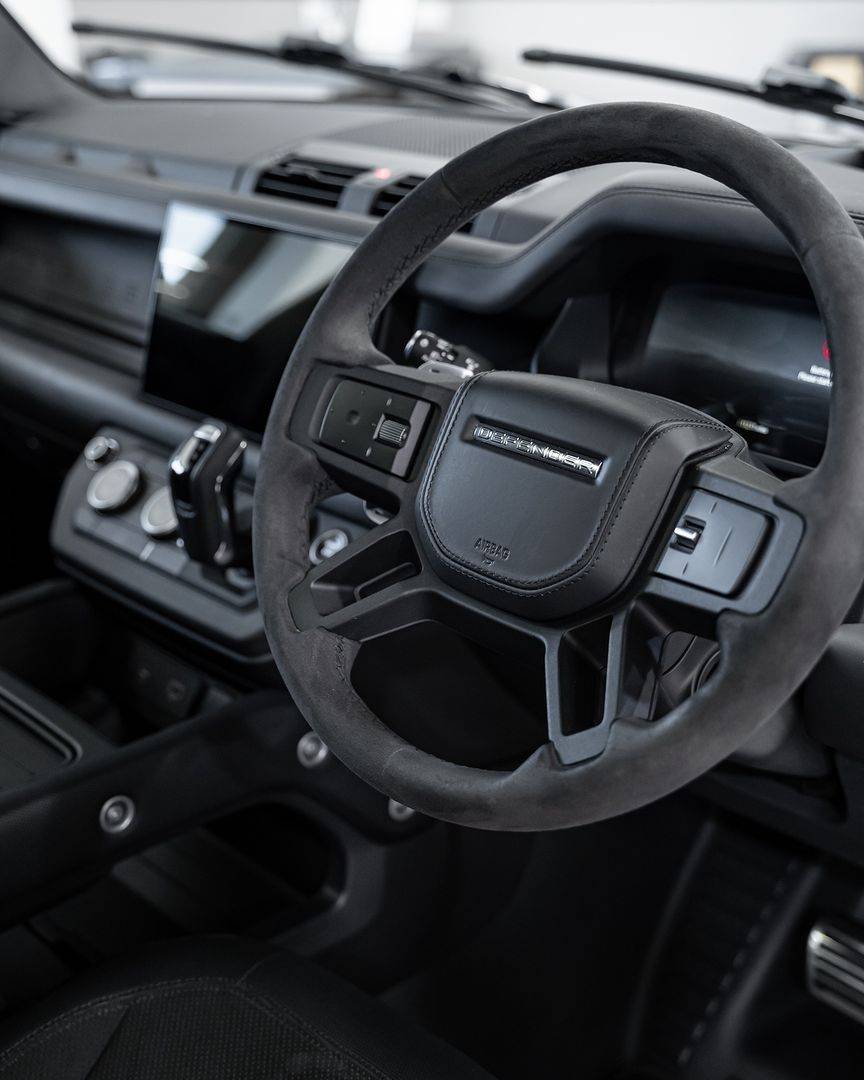 Urban Land Rover Defender 110 V8 is a powerful SUV that combines incredible factory specs with the full Urban Wide Track kit. The kit includes a host of upgrades that enhance the Defender’s off-road capabilities, including a lifted suspension, 20-inch alloy wheels wrapped in all-terrain tires, and a full underbody skid plate. The kit also includes a carbon fiber hood, fender flares, and a front bumper with integrated LED lighting.