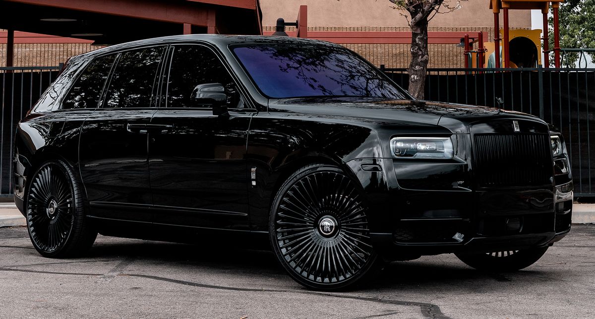 All Black Rolls Royce Cullinan on Trismestre Monoleggera Forgiato Black Wheels, Forgiato is a custom wheel manufacturer based in Los Angeles, CA.