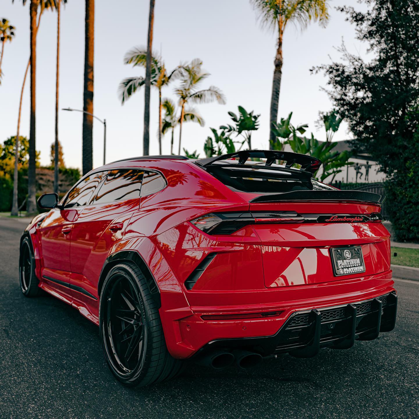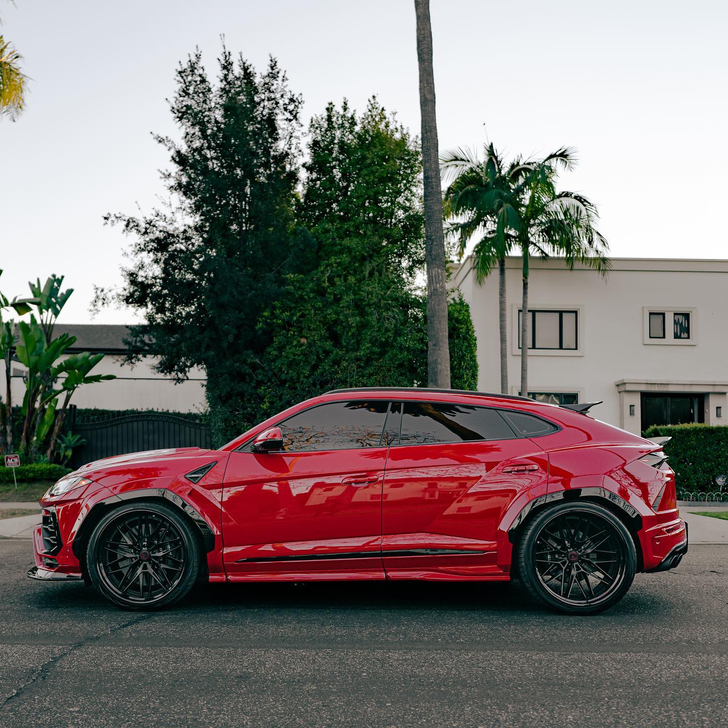 AGGRESSIVE @priordesign Rosso Mars Lamborghini Urus WIDEBODY slammed on 3pc forged @forgiato wheels.
