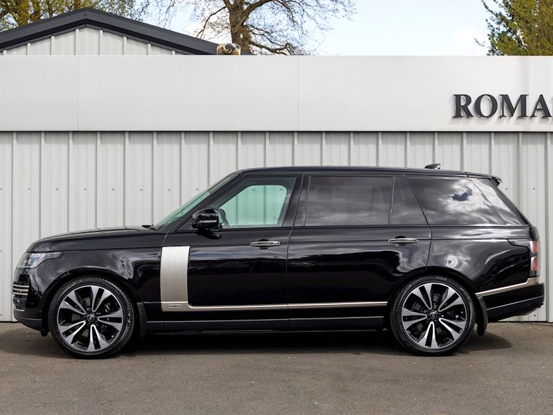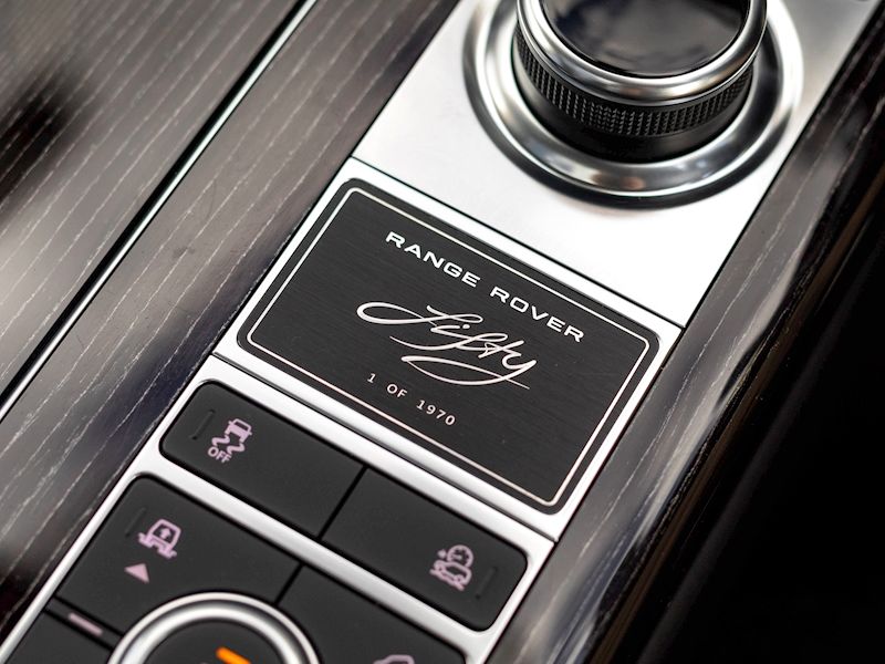 Key features of the ‘Fifty’ edition include Panoramic Roof, Pixel LED headlights and the various badging and scripts. Being a Long Wheelbase model means that passengers are treated with 19mm of extra legroom and combining this with the optional 10” Rear Seat Entertainment, adds to the relaxed and refined atmosphere that the Long Wheel Base Range Rover provides.
