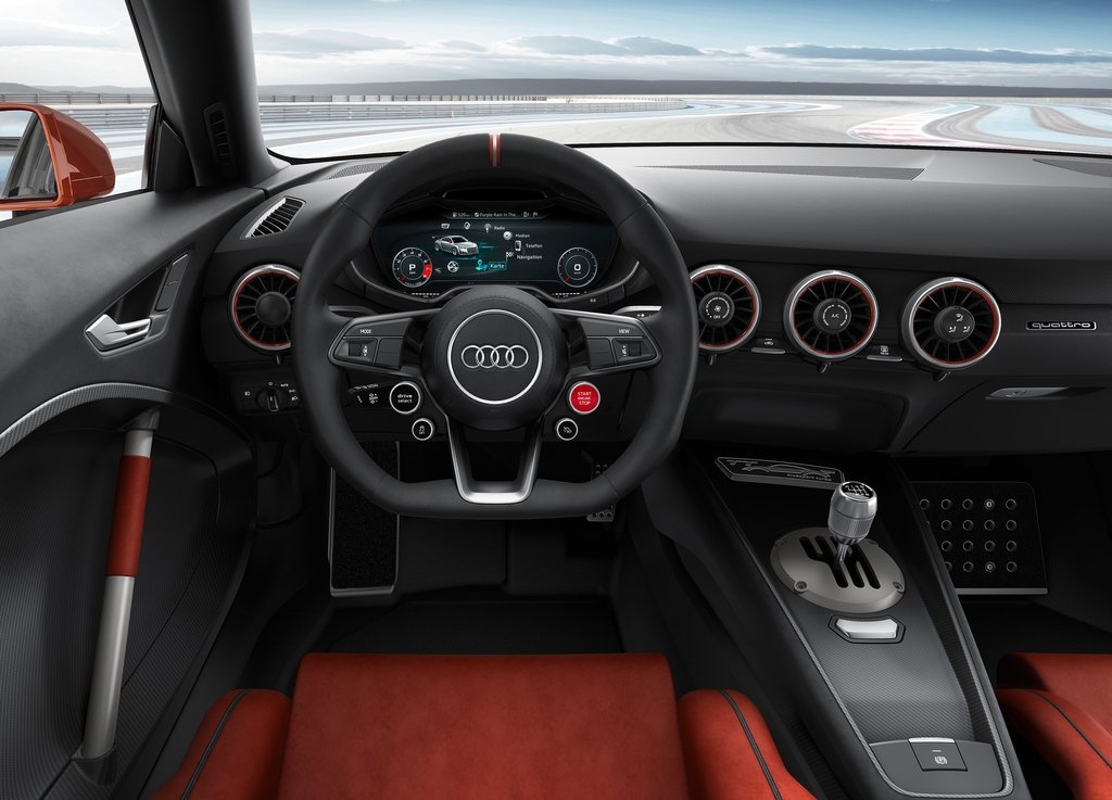 Thanks to systematic lightweight design, the TT clubsport turbo show car has an unladen weight of just 1,396 kg (3,077.7 lb). The car completes the standard sprint from 0 to 100 km/h (62.1 mph) in 3.6 seconds, and its top speed is 310 km/h (192.6 mph). The TT clubsport turbo plays out its big advantage over the first few meters of a sprint. Its electrically driven compressor lets it cover up to 16 meters (52.5 ft) within the first 2.5 seconds – which is six meters (19.7 ft) further than a comparable car without this innovation. That is a difference of around one and one-half car lengths.